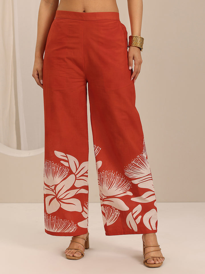 Our 2-piece Red printed Cotton co-ord set features an A-line Tunic with a Mandarin Collar neckline and Three-quarter sleeves. Complemented with matching Palazzos with an Elasticated waistband. Highlighted with Printed, this style is perfect for Casual wear.