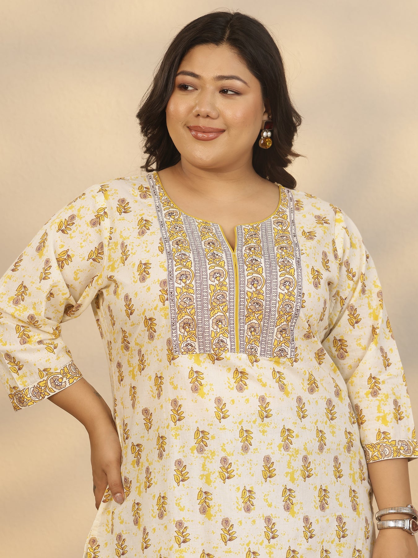 Plus Size Off white Printed Cotton Straight Short Kurti