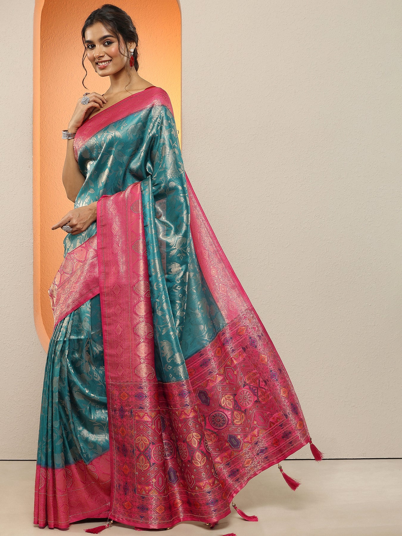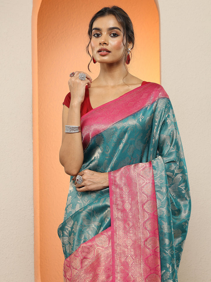 {"id":8560321560726,"title":"Teal Woven Design Silk Blend Sarees With Unstitched Blouse Piece","handle":"teal-woven-design-silk-blend-sarees-with-unstitched-blouse-piece-97033p","description":"\u003cp\u003eTeal Woven Design Silk Blend Sarees With Unstitched Blouse Piece\u003c\/p\u003e","published_at":"2025-12-02T16:07:47+05:30","created_at":"2025-11-28T16:40:01+05:30","vendor":"Libas","type":"All Products","tags":["97033P","AW25","AW25 SAREE","Ethnic Motif","EXCLA","Floral print Sarees","New Launch","NEWARRIVALSAW25","NEWARRIVALSSS25","Party Wear Sarees","SAREE","Sarees","Self Design Sareess","Silk blend","Silk Sarees","Teal","Teal Sarees","Woven Design"],"price":379900,"price_min":379900,"price_max":379900,"available":true,"price_varies":false,"compare_at_price":379900,"compare_at_price_min":379900,"compare_at_price_max":379900,"compare_at_price_varies":false,"variants":[{"id":45908908703894,"title":"Onesize","option1":"Onesize","option2":null,"option3":null,"sku":"97033P","requires_shipping":true,"taxable":true,"featured_image":{"id":40298813849750,"product_id":8560321560726,"position":4,"created_at":"2025-12-02T16:07:02+05:30","updated_at":"2025-12-02T16:07:49+05:30","alt":null,"width":2160,"height":2880,"src":"\/\/www.libas.in\/cdn\/shop\/files\/97033P_1_3f7f7e18-1846-4167-850e-7c43218df778.jpg?v=1764671869","variant_ids":[45908908703894]},"available":true,"name":"Teal Woven Design Silk Blend Sarees With Unstitched Blouse Piece - Onesize","public_title":"Onesize","options":["Onesize"],"price":379900,"weight":1,"compare_at_price":379900,"inventory_management":"shopify","barcode":"8909461124367","featured_media":{"alt":null,"id":31516338290838,"position":4,"preview_image":{"aspect_ratio":0.75,"height":2880,"width":2160,"src":"\/\/www.libas.in\/cdn\/shop\/files\/97033P_1_3f7f7e18-1846-4167-850e-7c43218df778.jpg?v=1764671869"}},"requires_selling_plan":false,"selling_plan_allocations":[],"quantity_rule":{"min":1,"max":null,"increment":1}}],"images":["\/\/www.libas.in\/cdn\/shop\/files\/Teal-Woven-Design-Silk-Blend-Sarees-With-Unstitched-Blouse-Piece-97033P_e77eab6f-f1a3-41ca-93b2-3e705b1b39c4.jpg?v=1764671801","\/\/www.libas.in\/cdn\/shop\/files\/97033P_2_8b113509-9ede-42dc-bbc2-dc4c1317caf9.jpg?v=1764671869","\/\/www.libas.in\/cdn\/shop\/files\/97033P_3_ba3a007c-1b63-4de2-8f94-7a2f6f5f763d.jpg?v=1764671869","\/\/www.libas.in\/cdn\/shop\/files\/97033P_1_3f7f7e18-1846-4167-850e-7c43218df778.jpg?v=1764671869","\/\/www.libas.in\/cdn\/shop\/files\/97033P_4_fe455bce-4487-4a1e-83df-6b8956f8cfd7.jpg?v=1764671869","\/\/www.libas.in\/cdn\/shop\/files\/97033P_5_68481898-79a7-4a4c-b964-1a603b5a19c7.jpg?v=1764671869","\/\/www.libas.in\/cdn\/shop\/files\/97033P_6_0b06d99a-b444-4ac9-b162-7e4a1edaa08a.jpg?v=1764671869"],"featured_image":"\/\/www.libas.in\/cdn\/shop\/files\/Teal-Woven-Design-Silk-Blend-Sarees-With-Unstitched-Blouse-Piece-97033P_e77eab6f-f1a3-41ca-93b2-3e705b1b39c4.jpg?v=1764671801","options":["Size"],"media":[{"alt":null,"id":31516336554134,"position":1,"preview_image":{"aspect_ratio":0.75,"height":2880,"width":2160,"src":"\/\/www.libas.in\/cdn\/shop\/files\/Teal-Woven-Design-Silk-Blend-Sarees-With-Unstitched-Blouse-Piece-97033P_e77eab6f-f1a3-41ca-93b2-3e705b1b39c4.jpg?v=1764671801"},"aspect_ratio":0.75,"height":2880,"media_type":"image","src":"\/\/www.libas.in\/cdn\/shop\/files\/Teal-Woven-Design-Silk-Blend-Sarees-With-Unstitched-Blouse-Piece-97033P_e77eab6f-f1a3-41ca-93b2-3e705b1b39c4.jpg?v=1764671801","width":2160},{"alt":null,"id":31516338323606,"position":2,"preview_image":{"aspect_ratio":0.75,"height":2880,"width":2160,"src":"\/\/www.libas.in\/cdn\/shop\/files\/97033P_2_8b113509-9ede-42dc-bbc2-dc4c1317caf9.jpg?v=1764671869"},"aspect_ratio":0.75,"height":2880,"media_type":"image","src":"\/\/www.libas.in\/cdn\/shop\/files\/97033P_2_8b113509-9ede-42dc-bbc2-dc4c1317caf9.jpg?v=1764671869","width":2160},{"alt":null,"id":31516338356374,"position":3,"preview_image":{"aspect_ratio":0.75,"height":2880,"width":2160,"src":"\/\/www.libas.in\/cdn\/shop\/files\/97033P_3_ba3a007c-1b63-4de2-8f94-7a2f6f5f763d.jpg?v=1764671869"},"aspect_ratio":0.75,"height":2880,"media_type":"image","src":"\/\/www.libas.in\/cdn\/shop\/files\/97033P_3_ba3a007c-1b63-4de2-8f94-7a2f6f5f763d.jpg?v=1764671869","width":2160},{"alt":null,"id":31516338290838,"position":4,"preview_image":{"aspect_ratio":0.75,"height":2880,"width":2160,"src":"\/\/www.libas.in\/cdn\/shop\/files\/97033P_1_3f7f7e18-1846-4167-850e-7c43218df778.jpg?v=1764671869"},"aspect_ratio":0.75,"height":2880,"media_type":"image","src":"\/\/www.libas.in\/cdn\/shop\/files\/97033P_1_3f7f7e18-1846-4167-850e-7c43218df778.jpg?v=1764671869","width":2160},{"alt":null,"id":31516338192534,"position":5,"preview_image":{"aspect_ratio":0.75,"height":2880,"width":2160,"src":"\/\/www.libas.in\/cdn\/shop\/files\/97033P_4_fe455bce-4487-4a1e-83df-6b8956f8cfd7.jpg?v=1764671869"},"aspect_ratio":0.75,"height":2880,"media_type":"image","src":"\/\/www.libas.in\/cdn\/shop\/files\/97033P_4_fe455bce-4487-4a1e-83df-6b8956f8cfd7.jpg?v=1764671869","width":2160},{"alt":null,"id":31516338225302,"position":6,"preview_image":{"aspect_ratio":0.75,"height":2880,"width":2160,"src":"\/\/www.libas.in\/cdn\/shop\/files\/97033P_5_68481898-79a7-4a4c-b964-1a603b5a19c7.jpg?v=1764671869"},"aspect_ratio":0.75,"height":2880,"media_type":"image","src":"\/\/www.libas.in\/cdn\/shop\/files\/97033P_5_68481898-79a7-4a4c-b964-1a603b5a19c7.jpg?v=1764671869","width":2160},{"alt":null,"id":31516338258070,"position":7,"preview_image":{"aspect_ratio":0.75,"height":2880,"width":2160,"src":"\/\/www.libas.in\/cdn\/shop\/files\/97033P_6_0b06d99a-b444-4ac9-b162-7e4a1edaa08a.jpg?v=1764671869"},"aspect_ratio":0.75,"height":2880,"media_type":"image","src":"\/\/www.libas.in\/cdn\/shop\/files\/97033P_6_0b06d99a-b444-4ac9-b162-7e4a1edaa08a.jpg?v=1764671869","width":2160}],"requires_selling_plan":false,"selling_plan_groups":[],"content":"\u003cp\u003eTeal Woven Design Silk Blend Sarees With Unstitched Blouse Piece\u003c\/p\u003e"