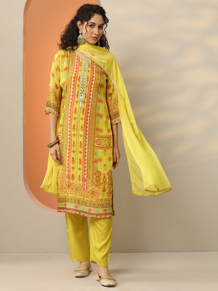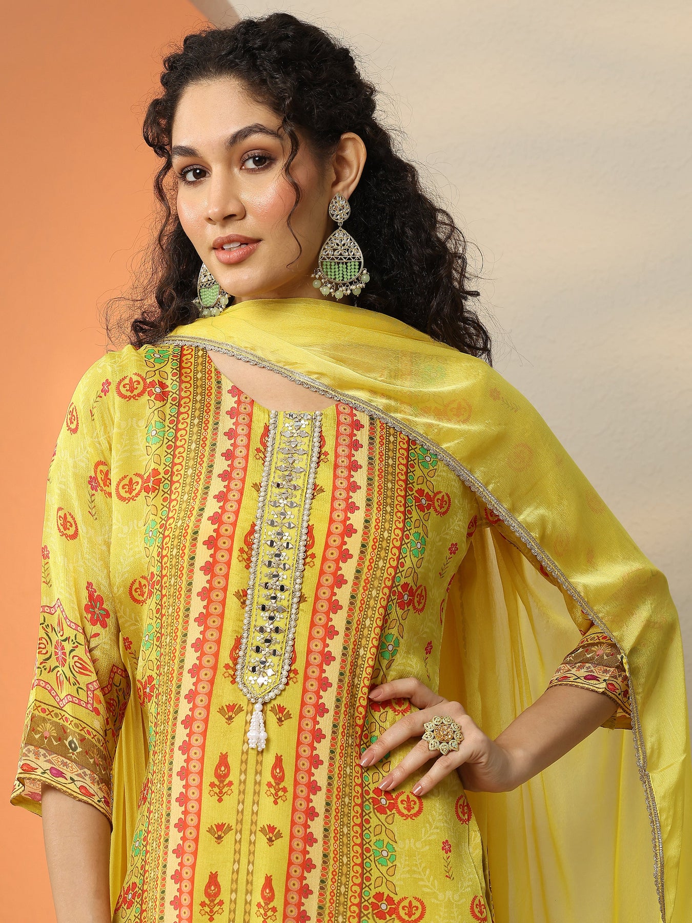 Yellow Printed Chinon Straight Suit Set With Dupatta