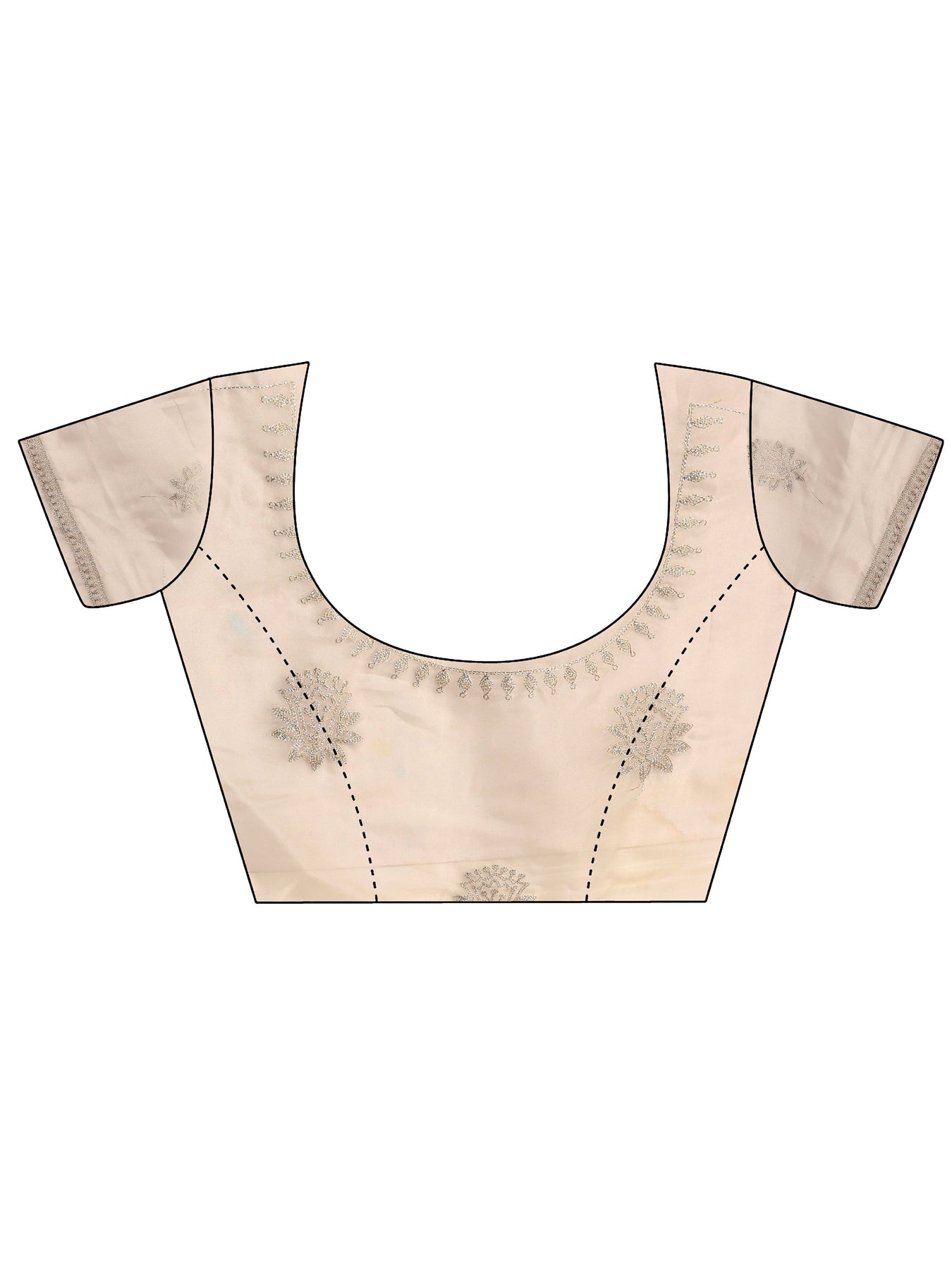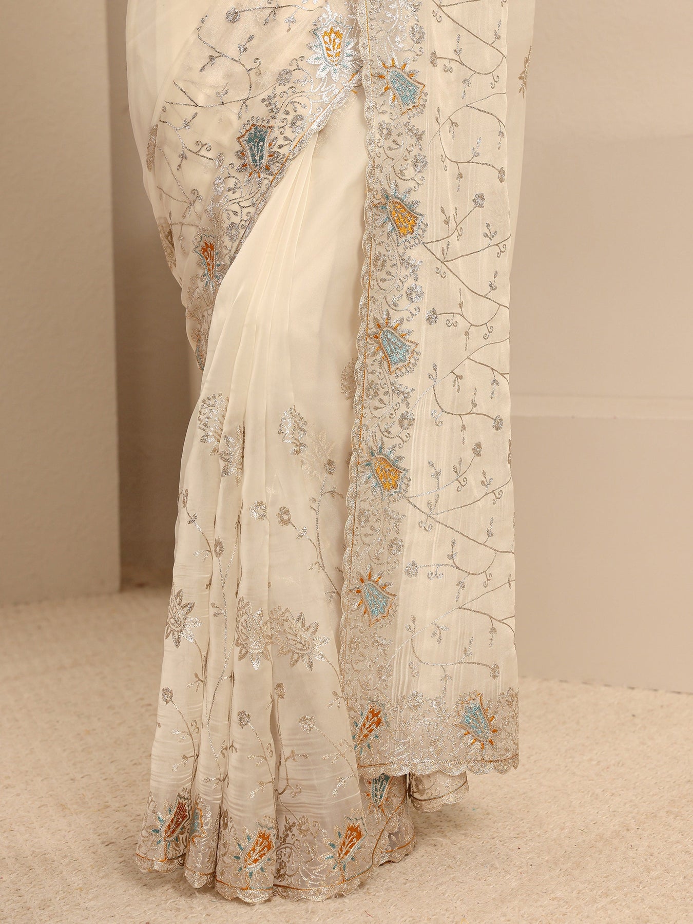 Off White Embellished Silk Blend Saree With Unstitched Blouse Piece