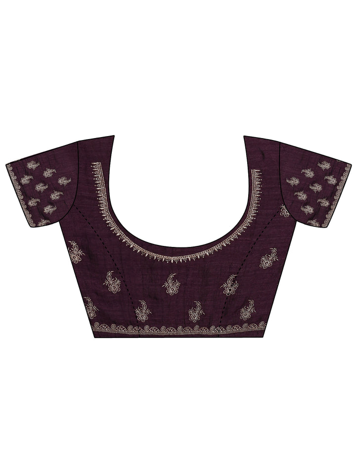 Burgundy Embroidered Silk Blend Saree With Unstitched Blouse Piece