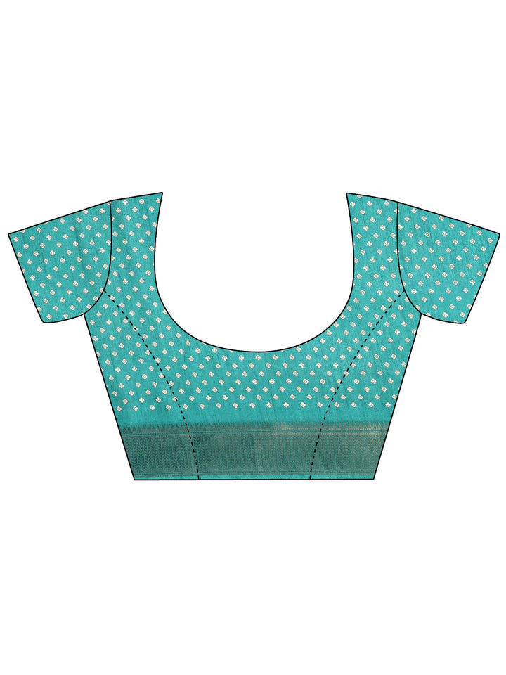 Our teal printed silk blend saree features captivating paisley and floral print. Complemented with a Unstitched blouse piece.. This charming saree is perfect for festive occasions.