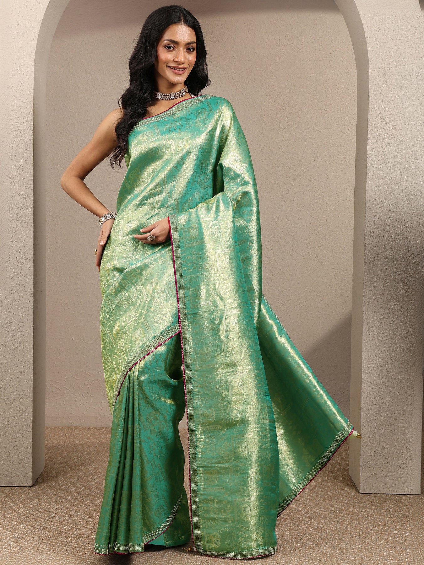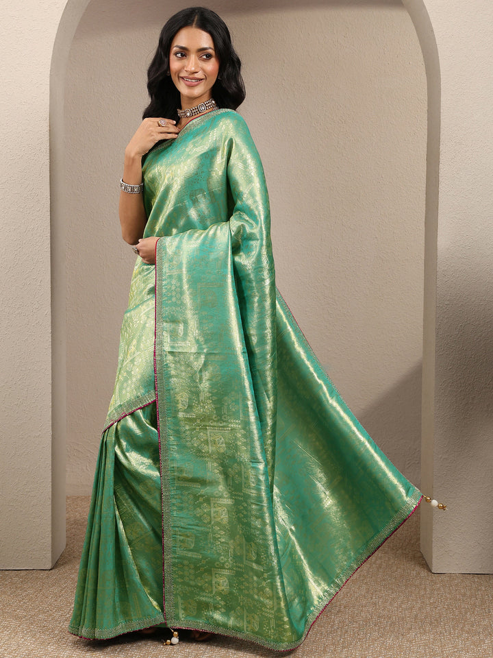 Green Woven Design Banarsi Silk Blend Saree With Unstitched Blouse Pie