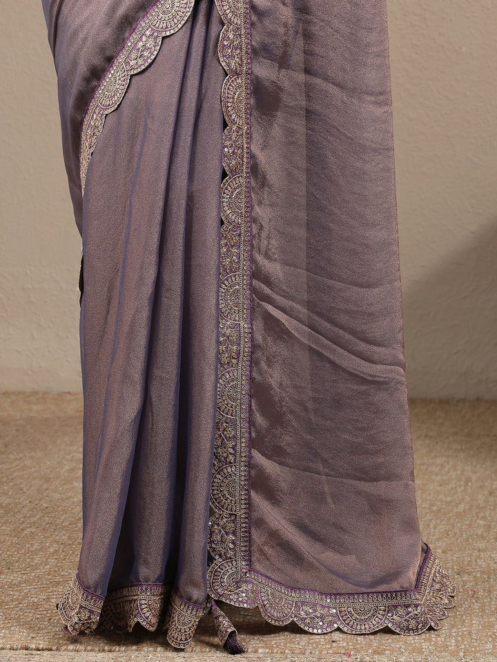 Lavender Solid Organza Saree With Unstitched Blouse Piece