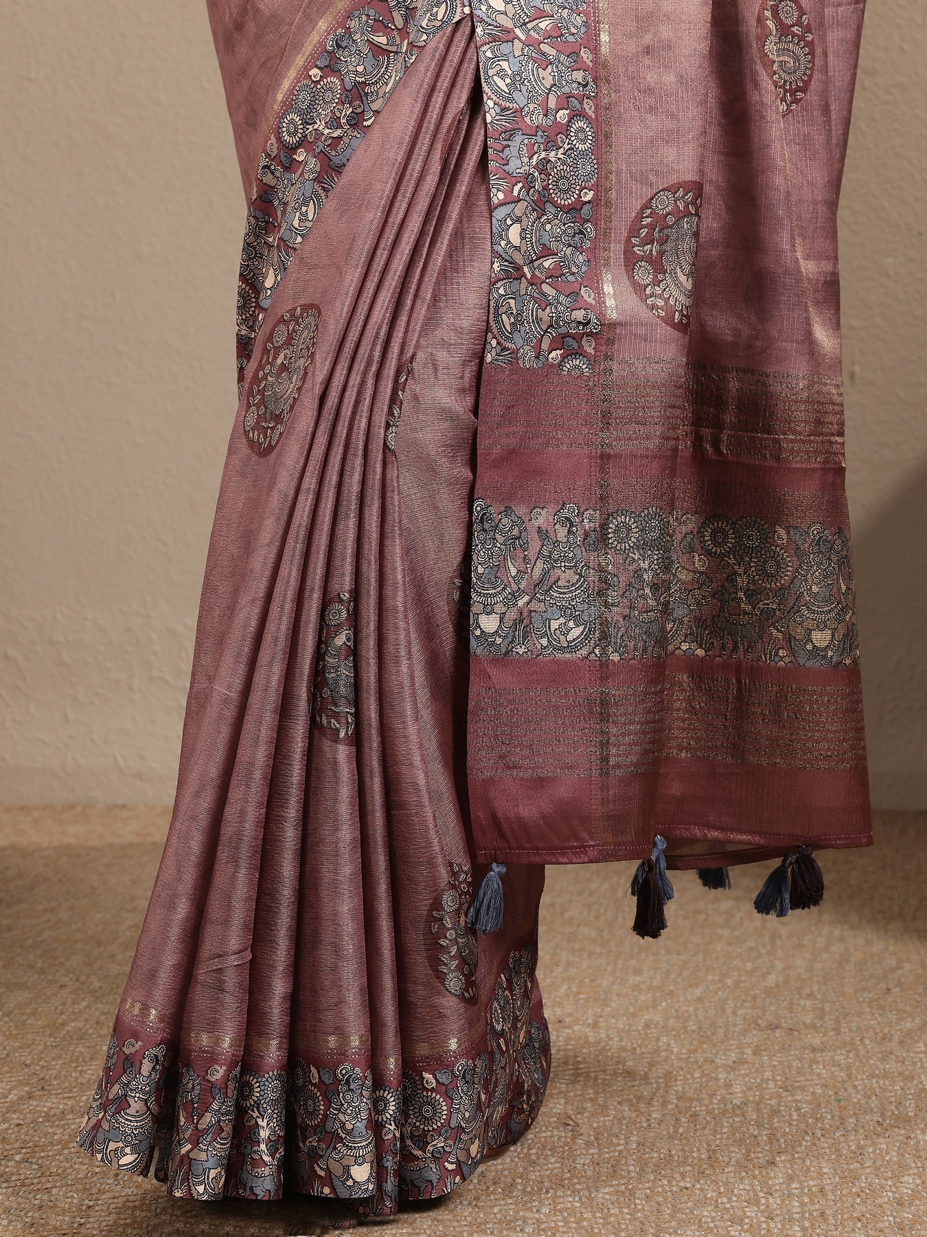 Mauve Printed Silk Blend Saree With Unstitched Blouse Piece