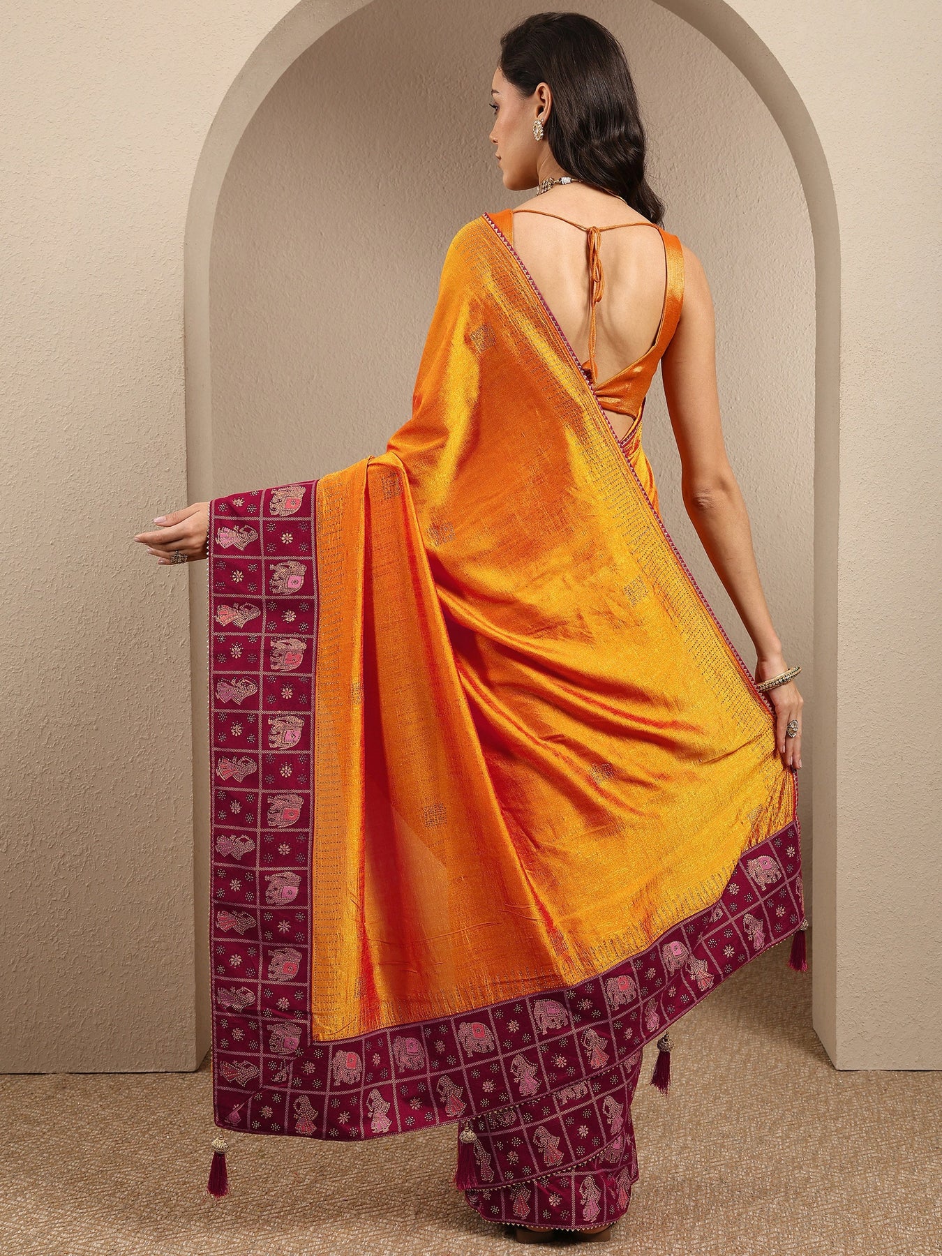 Mustard Embellished Silk Blend Saree With Unstitched Blouse Piece