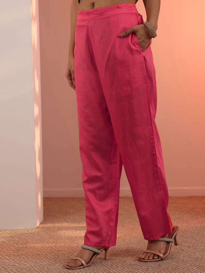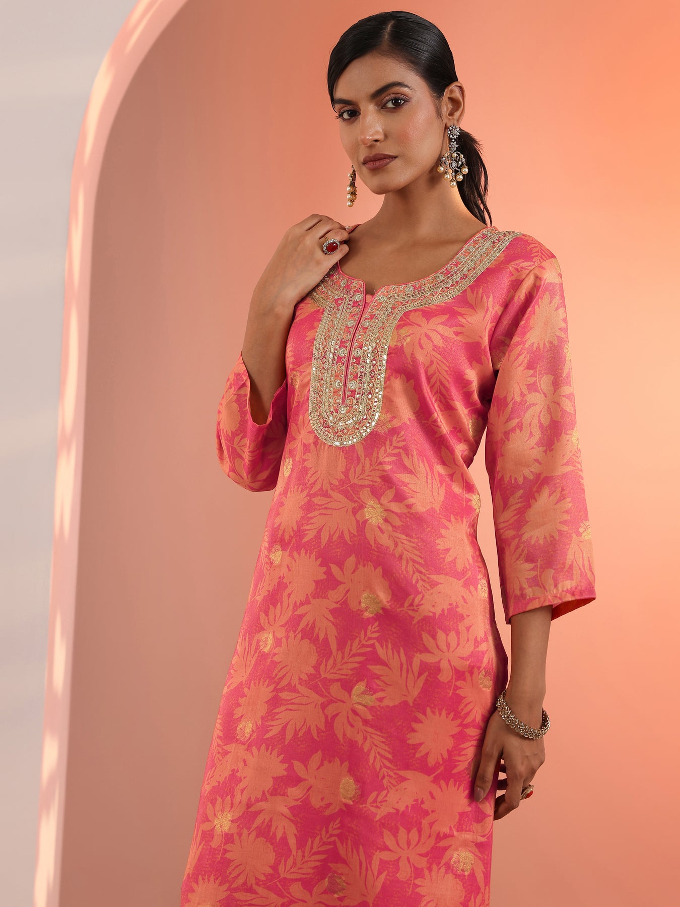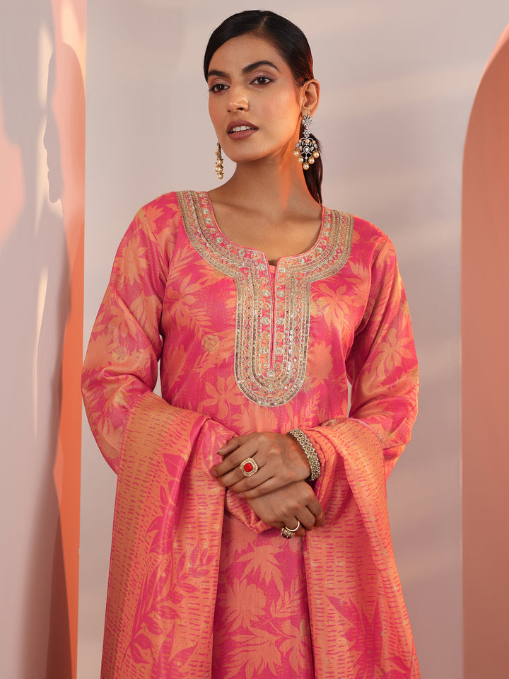 Our 3-piece Pink Silk blend Kurta Set features a Straight-fit kurta with a U-Notched Neckline, Regular Sleeves, and statement yoke. Complemented with Straight Pants with a Partially Elasticated waistband and 2 pockets, and a Printed dupatta. Adorned with Floral Printed accents, this style is perfect for Festive wear.