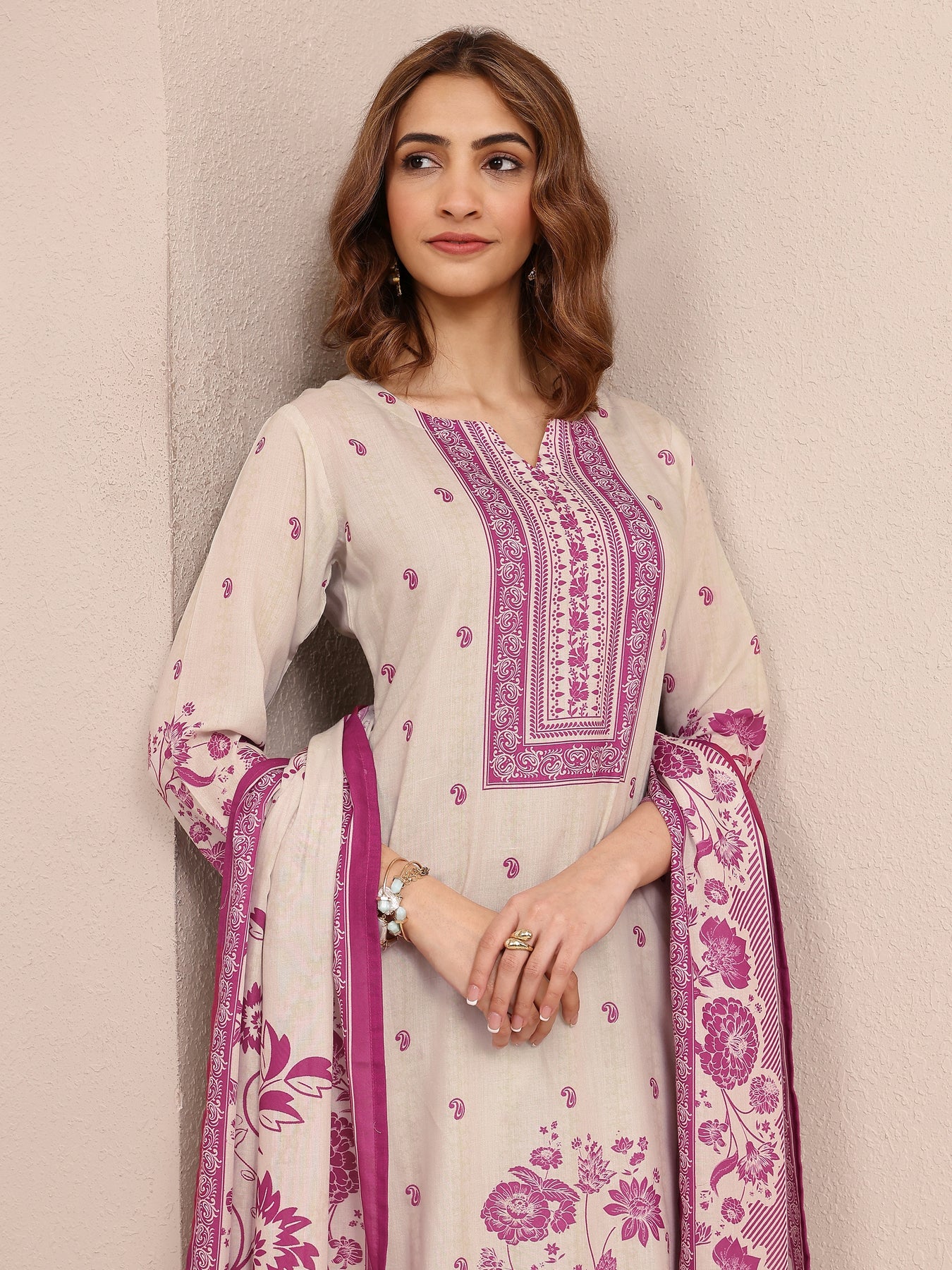 Pink Printed cotton blend Straight Suit Set With Dupatta