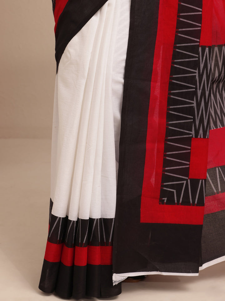 Our Red printed Cotton saree features captivating NA print. Complemented with an unstitched Blouse Piece. This charming saree is perfect for festive occasions