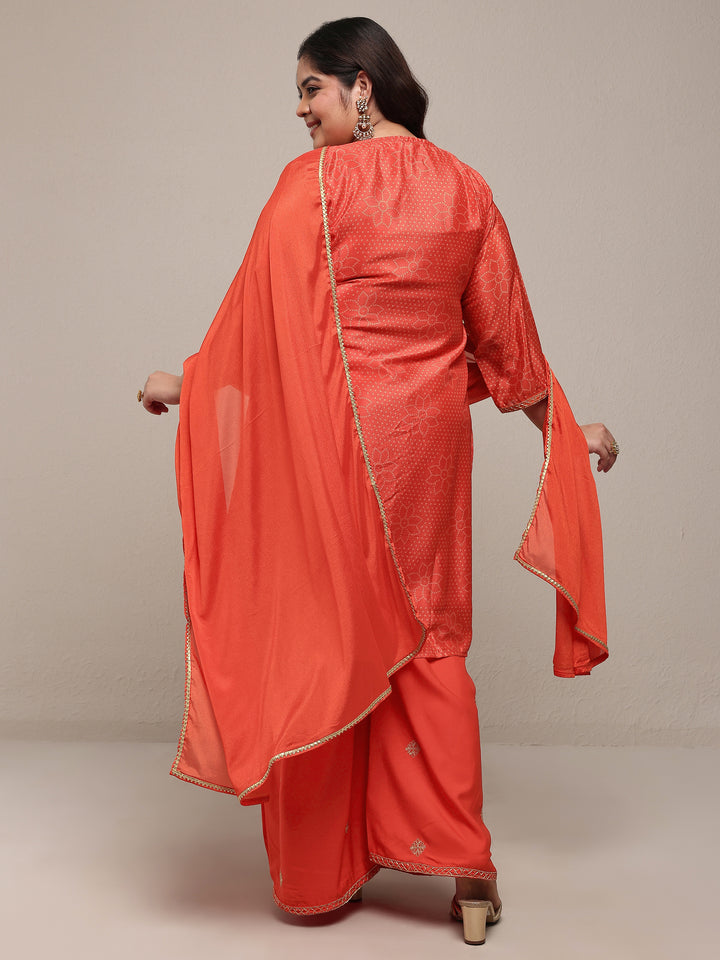 Plus Size Red Bandhani Printed Silk Blend Straight Suit Set With Dupatta