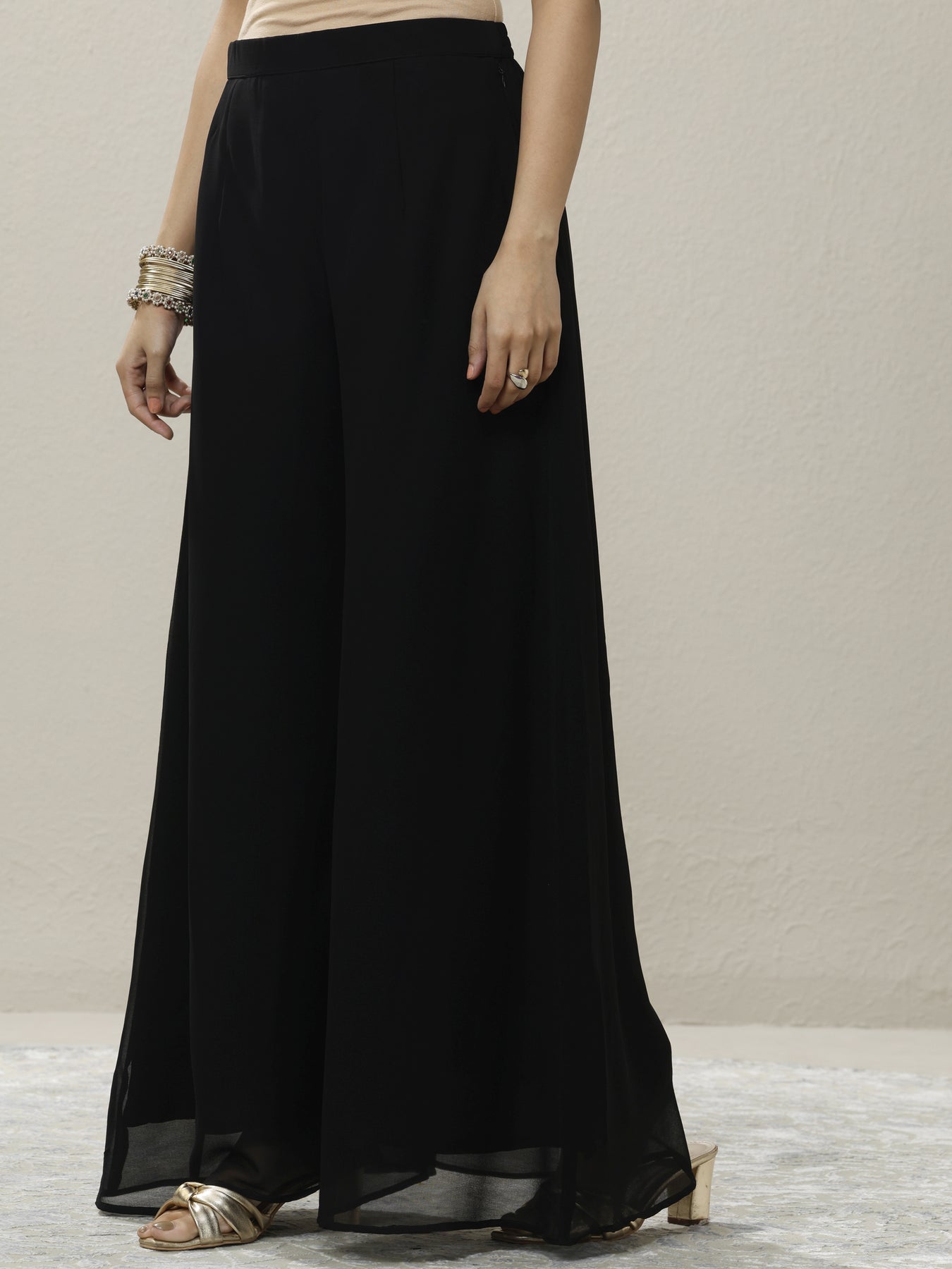 Our 3-piece Black Georgette Fit and Flare Kurta Set features a Round Neckline and statement yoke. Complemented with Straight Pants with a Partially Elasticated waistband and 2 pockets, and a Solid dupatta. Adorned with ethnic motif embroidered, this style is perfect for Dark Festive.
