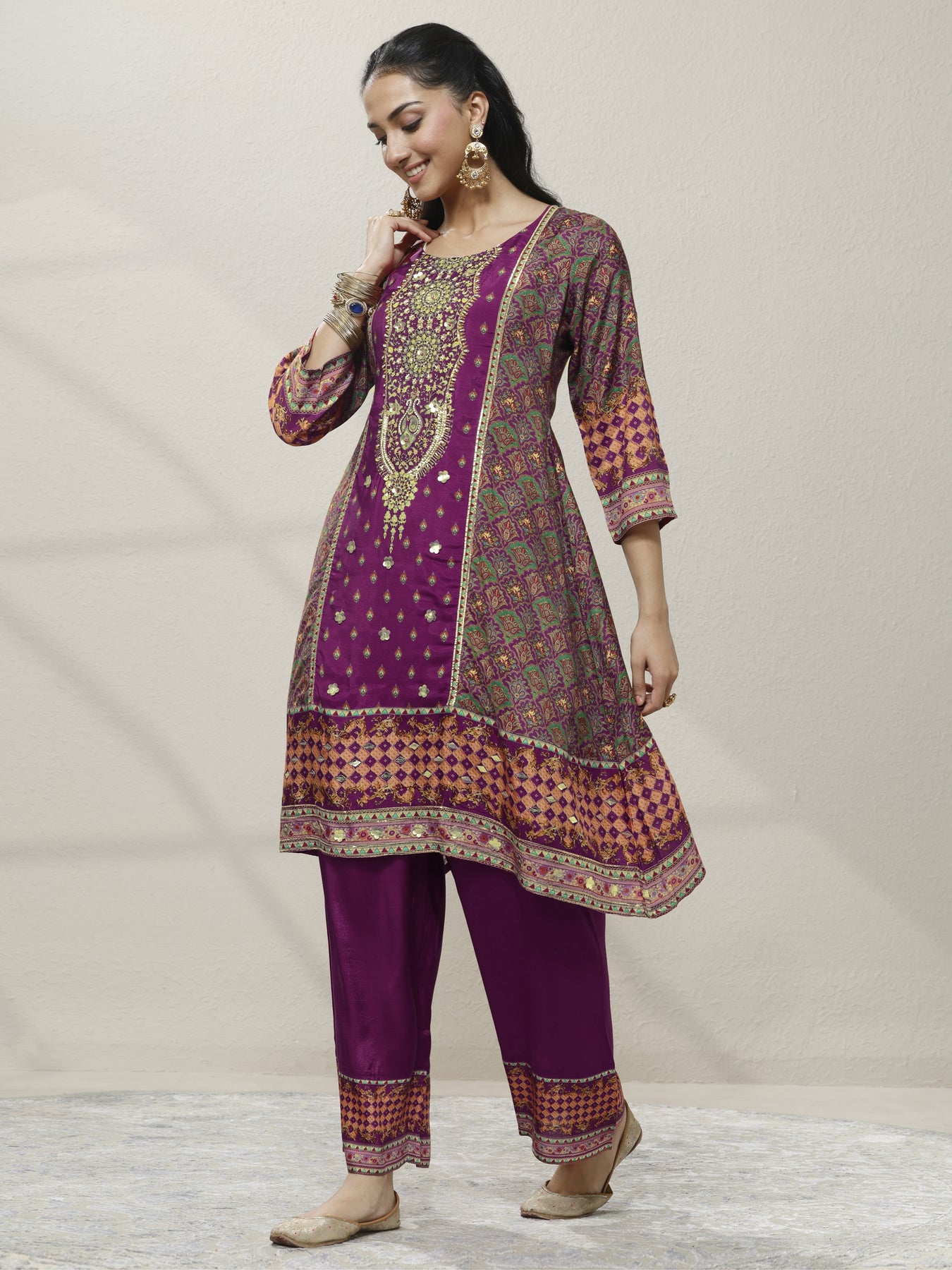 {"id":8569462194326,"title":"Magenta Embroidered Silk blend A-line Suit Set With Dupatta","handle":"magenta-embroidered-silk-blend-a-line-suit-set-with-dupatta-51196a","description":"\u003cp\u003eOur 3-piece Purple Silk blend Straight-fit Kurta Set features a Round Neckline, Regular Sleeves, and statement Yoke. Complemented with Straight Pants with a Partially Elasticated waistband and 2 pockets, and a Solid dupatta. Adorned with ethnic motif printed, this style is perfect for Dark Festive.\u003c\/p\u003e","published_at":"2025-12-31T18:11:32+05:30","created_at":"2025-12-09T12:28:12+05:30","vendor":"Libas","type":"All Products","tags":["51196A","A-line Suits","AW'25","AW25 KURTA SET","AW25 SKD","AW25 SUITS","Embroidered","Embroidered Suits","Ethnic Motif","EXCLA","Floral Suits","Knee-Length","Magenta","Magenta Suits","New Launch","NEWARRIVALSAW25","NEWARRIVALSSS25","Party Wear Suits","Regular Sleeves","Round Neckline","Sale-P","Silk blend","Silk Suits","SKD","Three-quarter sleeves"],"price":261900,"price_min":261900,"price_max":261900,"available":true,"price_varies":false,"compare_at_price":569900,"compare_at_price_min":569900,"compare_at_price_max":569900,"compare_at_price_varies":false,"variants":[{"id":45999662465174,"title":"S","option1":"S","option2":null,"option3":null,"sku":"51196A-S","requires_shipping":true,"taxable":true,"featured_image":{"id":40916866400406,"product_id":8569462194326,"position":4,"created_at":"2025-12-31T18:11:21+05:30","updated_at":"2025-12-31T18:11:34+05:30","alt":null,"width":2160,"height":2880,"src":"\/\/www.libas.in\/cdn\/shop\/files\/51196A_1.jpg?v=1767184894","variant_ids":[45999662465174,45999662497942,45999662530710,45999662563478,45999662596246]},"available":true,"name":"Magenta Embroidered Silk blend A-line Suit Set With Dupatta - S","public_title":"S","options":["S"],"price":261900,"weight":585,"compare_at_price":569900,"inventory_management":"shopify","barcode":"8909076951532","featured_media":{"alt":null,"id":31837881925782,"position":4,"preview_image":{"aspect_ratio":0.75,"height":2880,"width":2160,"src":"\/\/www.libas.in\/cdn\/shop\/files\/51196A_1.jpg?v=1767184894"}},"requires_selling_plan":false,"selling_plan_allocations":[],"quantity_rule":{"min":1,"max":null,"increment":1}},{"id":45999662497942,"title":"M","option1":"M","option2":null,"option3":null,"sku":"51196A-M","requires_shipping":true,"taxable":true,"featured_image":{"id":40916866400406,"product_id":8569462194326,"position":4,"created_at":"2025-12-31T18:11:21+05:30","updated_at":"2025-12-31T18:11:34+05:30","alt":null,"width":2160,"height":2880,"src":"\/\/www.libas.in\/cdn\/shop\/files\/51196A_1.jpg?v=1767184894","variant_ids":[45999662465174,45999662497942,45999662530710,45999662563478,45999662596246]},"available":true,"name":"Magenta Embroidered Silk blend A-line Suit Set With Dupatta - M","public_title":"M","options":["M"],"price":261900,"weight":585,"compare_at_price":569900,"inventory_management":"shopify","barcode":"8909076951549","featured_media":{"alt":null,"id":31837881925782,"position":4,"preview_image":{"aspect_ratio":0.75,"height":2880,"width":2160,"src":"\/\/www.libas.in\/cdn\/shop\/files\/51196A_1.jpg?v=1767184894"}},"requires_selling_plan":false,"selling_plan_allocations":[],"quantity_rule":{"min":1,"max":null,"increment":1}},{"id":45999662530710,"title":"L","option1":"L","option2":null,"option3":null,"sku":"51196A-L","requires_shipping":true,"taxable":true,"featured_image":{"id":40916866400406,"product_id":8569462194326,"position":4,"created_at":"2025-12-31T18:11:21+05:30","updated_at":"2025-12-31T18:11:34+05:30","alt":null,"width":2160,"height":2880,"src":"\/\/www.libas.in\/cdn\/shop\/files\/51196A_1.jpg?v=1767184894","variant_ids":[45999662465174,45999662497942,45999662530710,45999662563478,45999662596246]},"available":true,"name":"Magenta Embroidered Silk blend A-line Suit Set With Dupatta - L","public_title":"L","options":["L"],"price":261900,"weight":585,"compare_at_price":569900,"inventory_management":"shopify","barcode":"8909076951556","featured_media":{"alt":null,"id":31837881925782,"position":4,"preview_image":{"aspect_ratio":0.75,"height":2880,"width":2160,"src":"\/\/www.libas.in\/cdn\/shop\/files\/51196A_1.jpg?v=1767184894"}},"requires_selling_plan":false,"selling_plan_allocations":[],"quantity_rule":{"min":1,"max":null,"increment":1}},{"id":45999662563478,"title":"XL","option1":"XL","option2":null,"option3":null,"sku":"51196A-XL","requires_shipping":true,"taxable":true,"featured_image":{"id":40916866400406,"product_id":8569462194326,"position":4,"created_at":"2025-12-31T18:11:21+05:30","updated_at":"2025-12-31T18:11:34+05:30","alt":null,"width":2160,"height":2880,"src":"\/\/www.libas.in\/cdn\/shop\/files\/51196A_1.jpg?v=1767184894","variant_ids":[45999662465174,45999662497942,45999662530710,45999662563478,45999662596246]},"available":true,"name":"Magenta Embroidered Silk blend A-line Suit Set With Dupatta - XL","public_title":"XL","options":["XL"],"price":261900,"weight":585,"compare_at_price":569900,"inventory_management":"shopify","barcode":"8909076951563","featured_media":{"alt":null,"id":31837881925782,"position":4,"preview_image":{"aspect_ratio":0.75,"height":2880,"width":2160,"src":"\/\/www.libas.in\/cdn\/shop\/files\/51196A_1.jpg?v=1767184894"}},"requires_selling_plan":false,"selling_plan_allocations":[],"quantity_rule":{"min":1,"max":null,"increment":1}},{"id":45999662596246,"title":"XXL","option1":"XXL","option2":null,"option3":null,"sku":"51196A-XXL","requires_shipping":true,"taxable":true,"featured_image":{"id":40916866400406,"product_id":8569462194326,"position":4,"created_at":"2025-12-31T18:11:21+05:30","updated_at":"2025-12-31T18:11:34+05:30","alt":null,"width":2160,"height":2880,"src":"\/\/www.libas.in\/cdn\/shop\/files\/51196A_1.jpg?v=1767184894","variant_ids":[45999662465174,45999662497942,45999662530710,45999662563478,45999662596246]},"available":true,"name":"Magenta Embroidered Silk blend A-line Suit Set With Dupatta - XXL","public_title":"