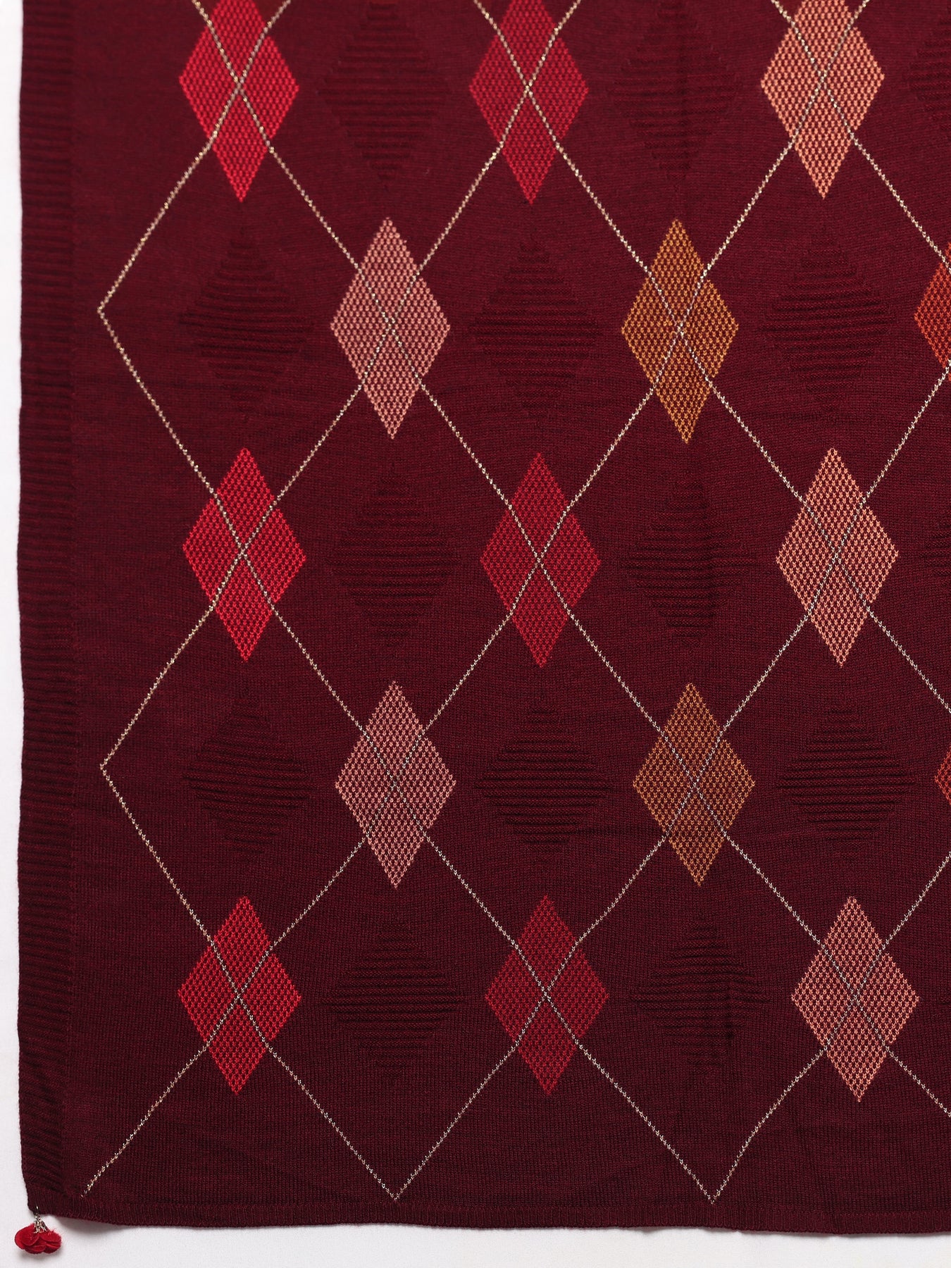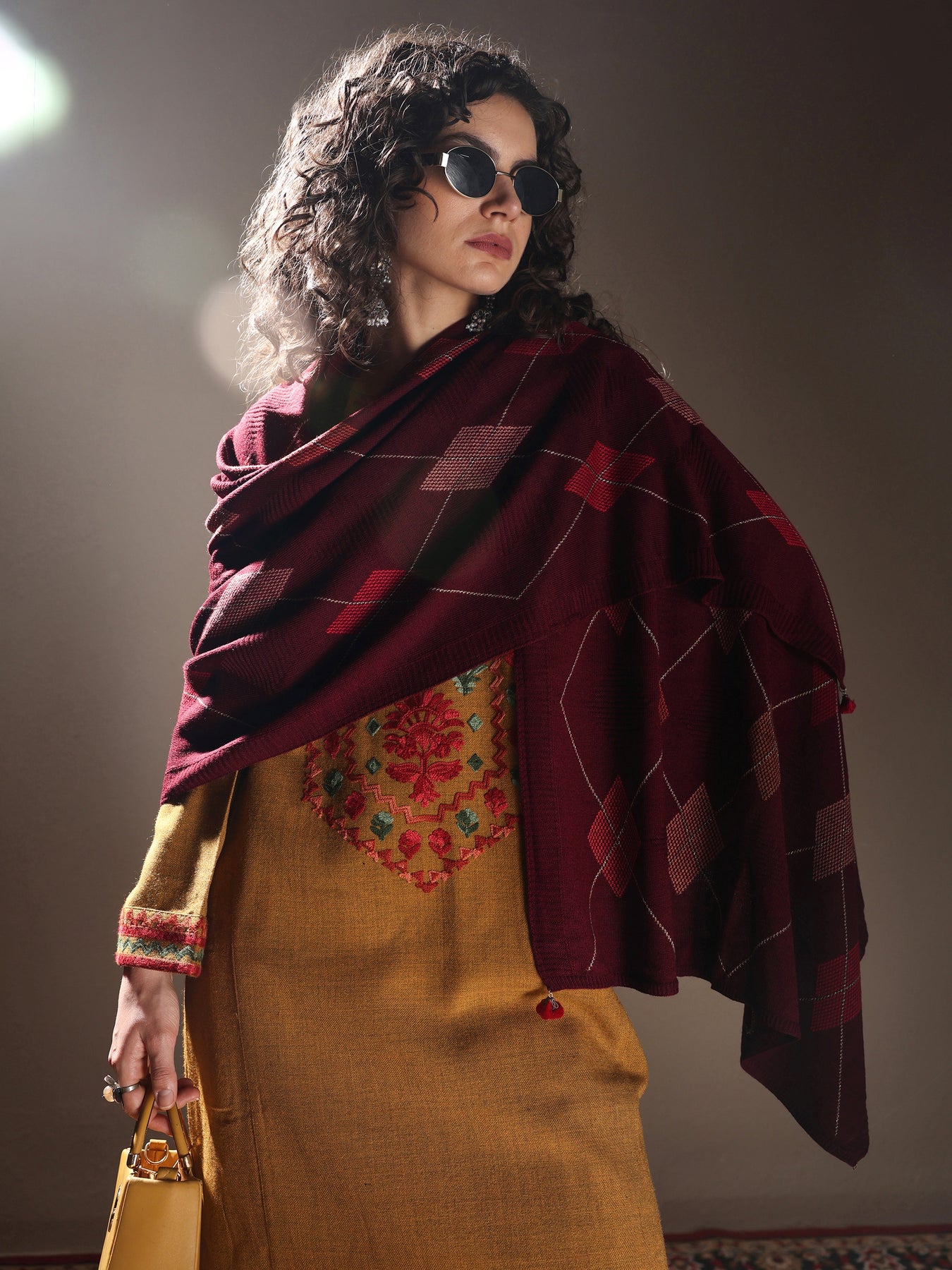 A woven design shawl in maroon, perfect for casual and work wear, ideal for layering over ethnic outfits.