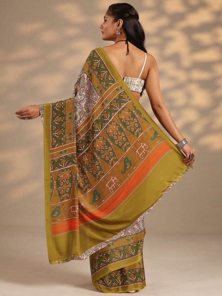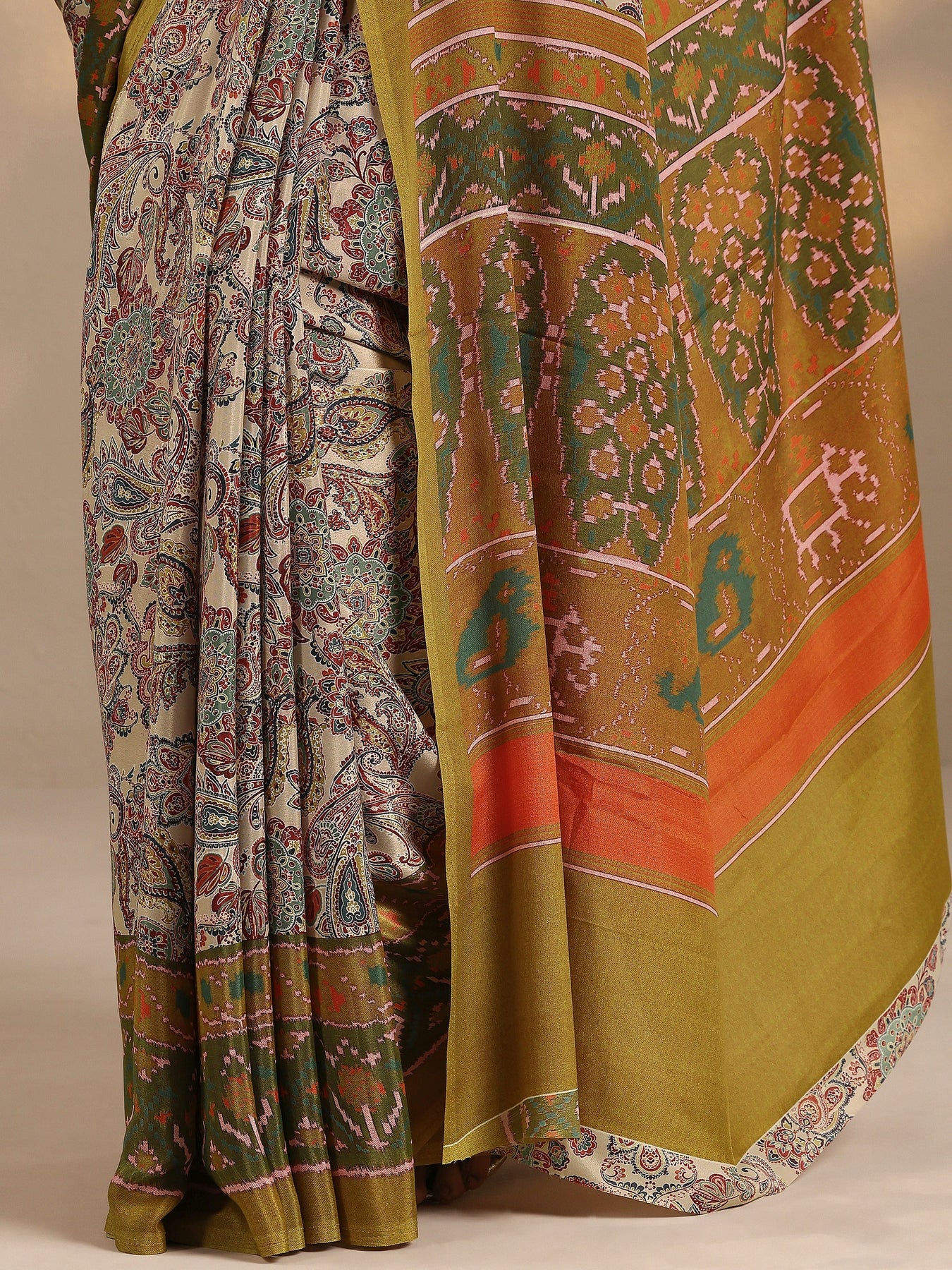 Multi Printed Silk Blend Saree With Unstitched Blouse Piece