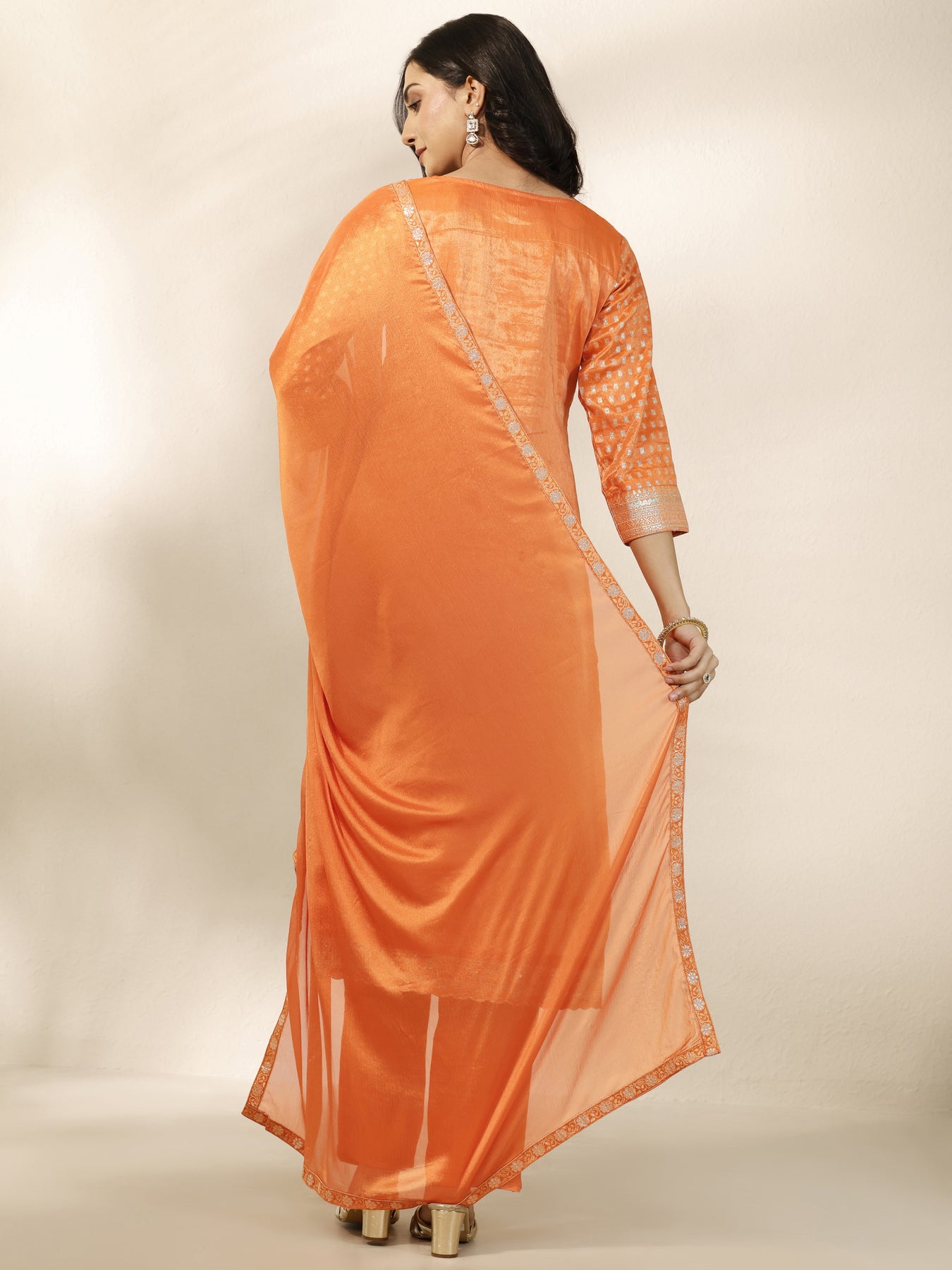 Orange Woven Design Silk Blend Straight Suit Set With Dupatta