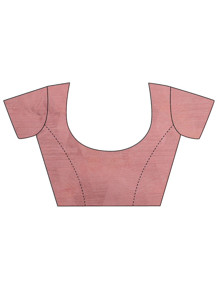Peach Printed Silk Blend Saree With Unstitched Blouse Piece
