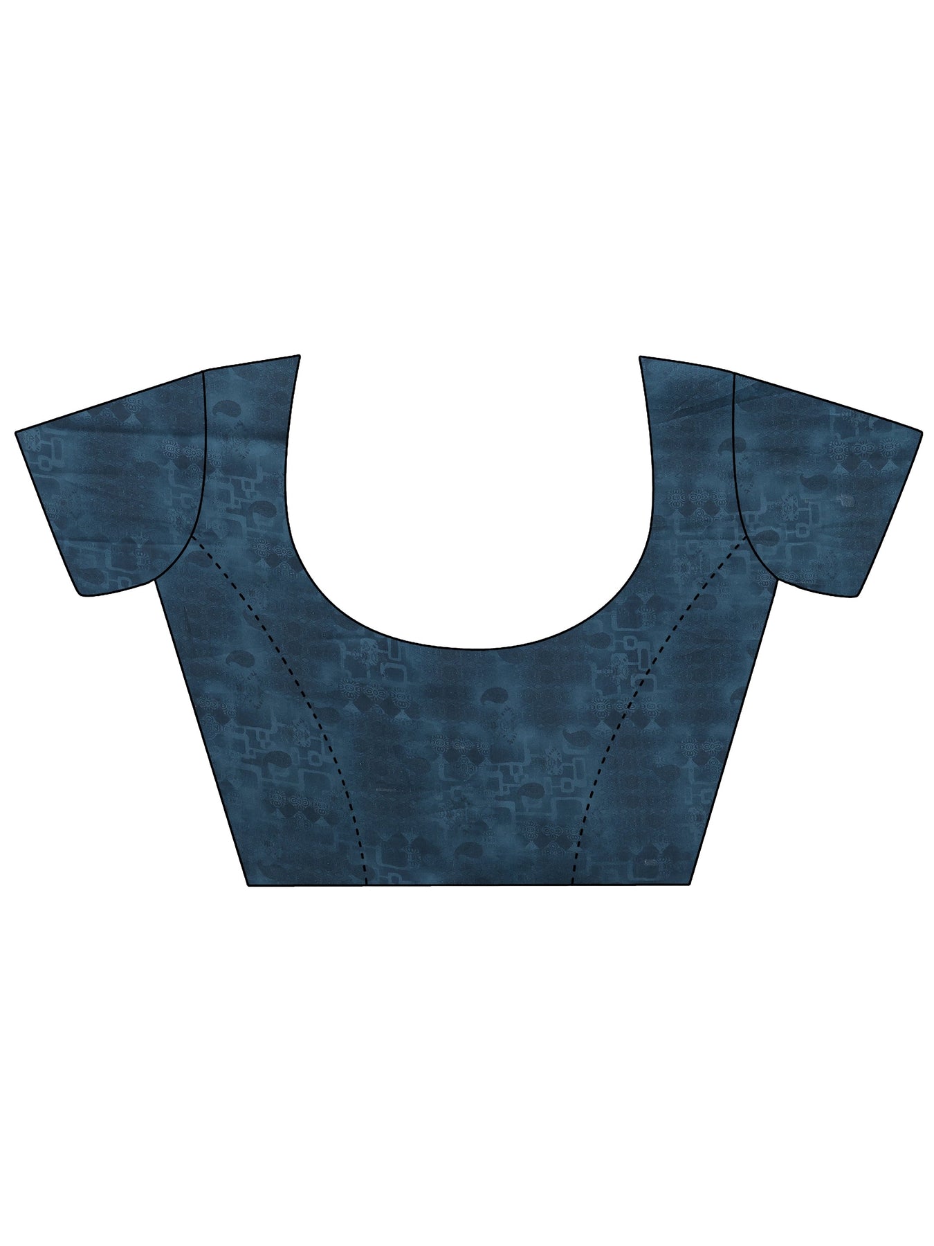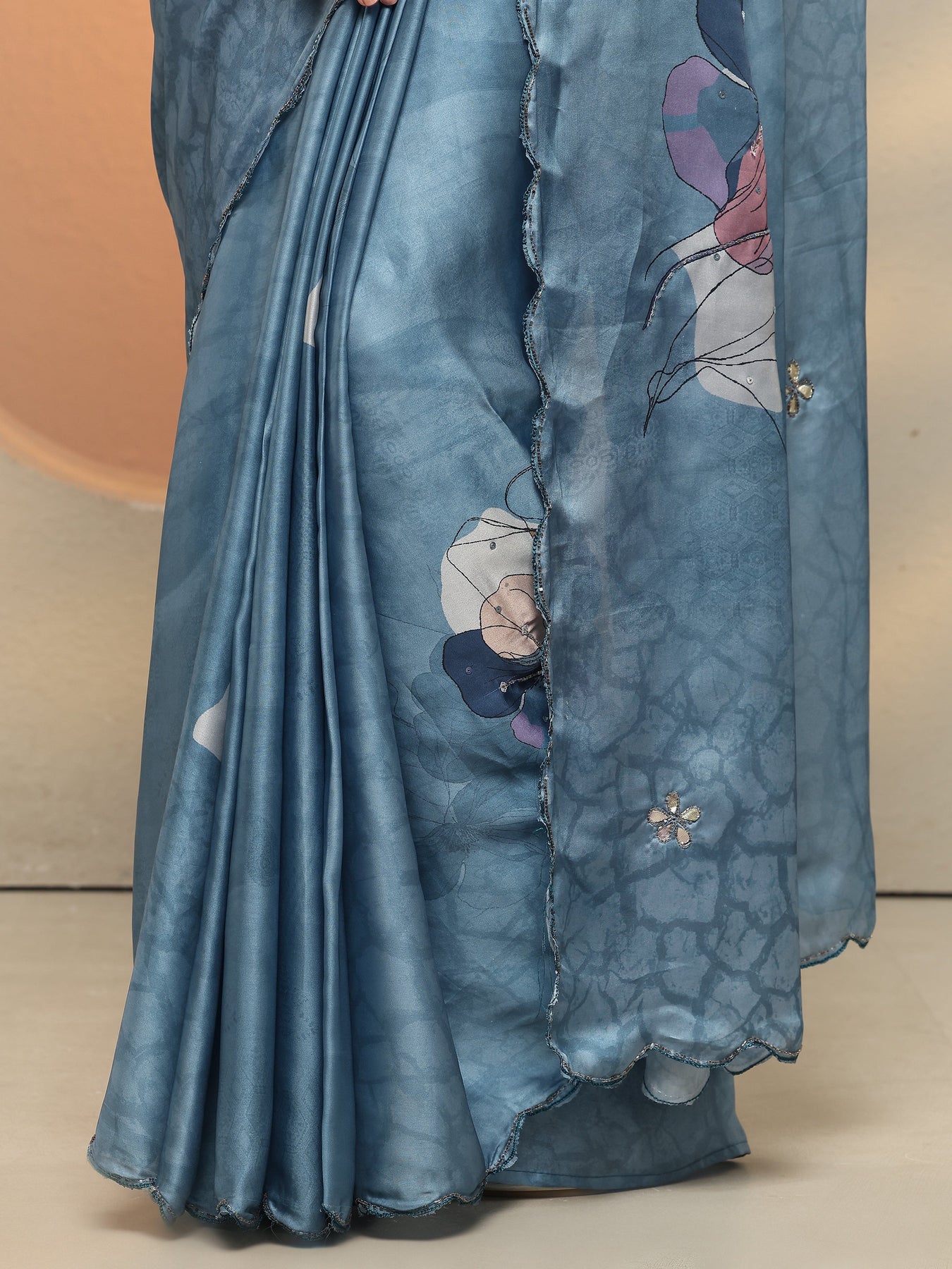 Our Blue Printed Silk Blend Saree Features Captivating Floral Print. Complemented With A Blouse Piece. This Charming Saree Is Perfect For Festive Occasions.