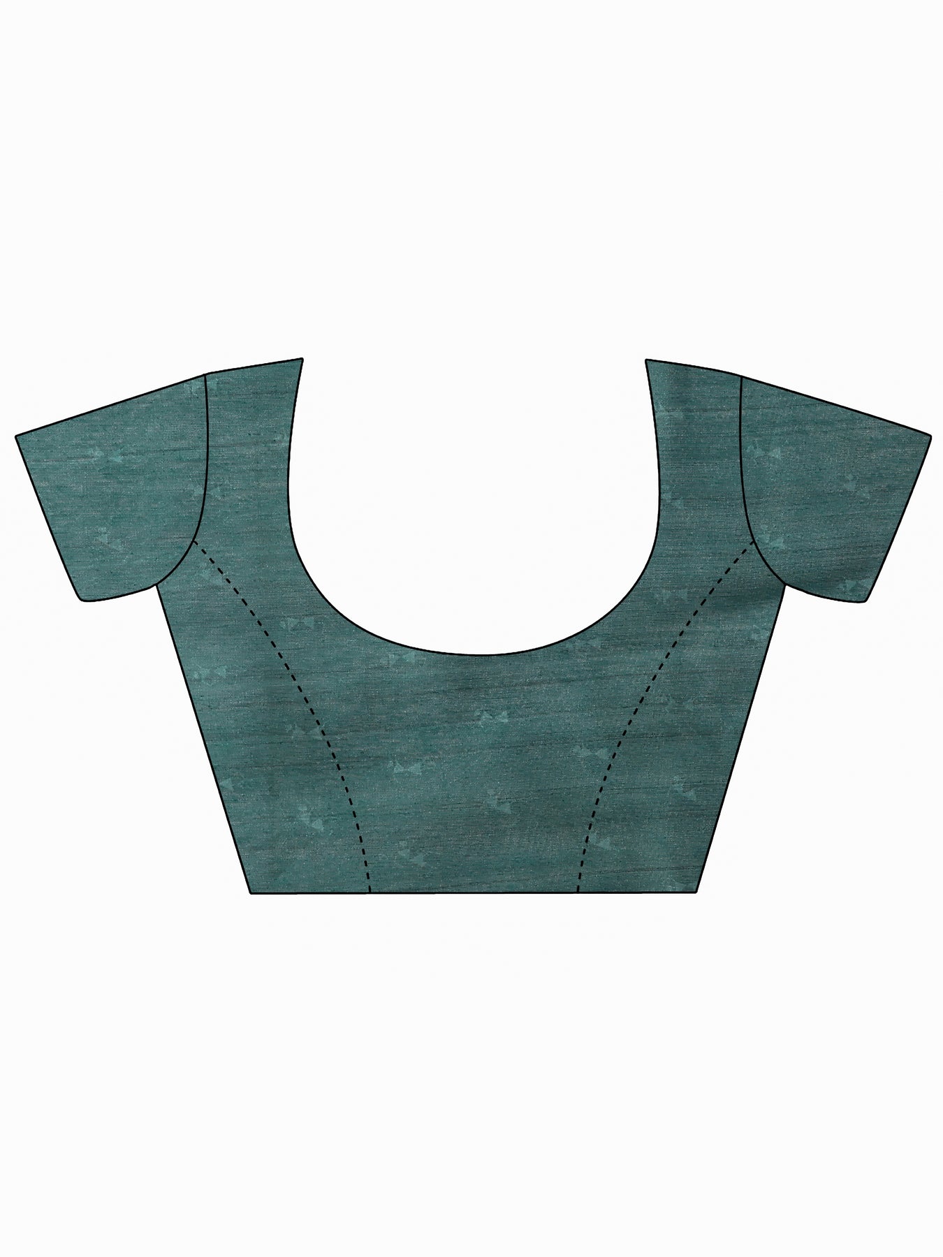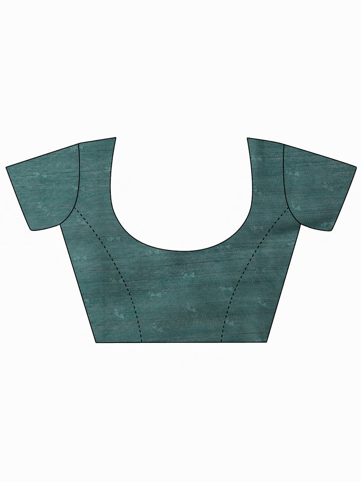 Green Printed Silk Blend Saree With Unstitched Blouse Picece