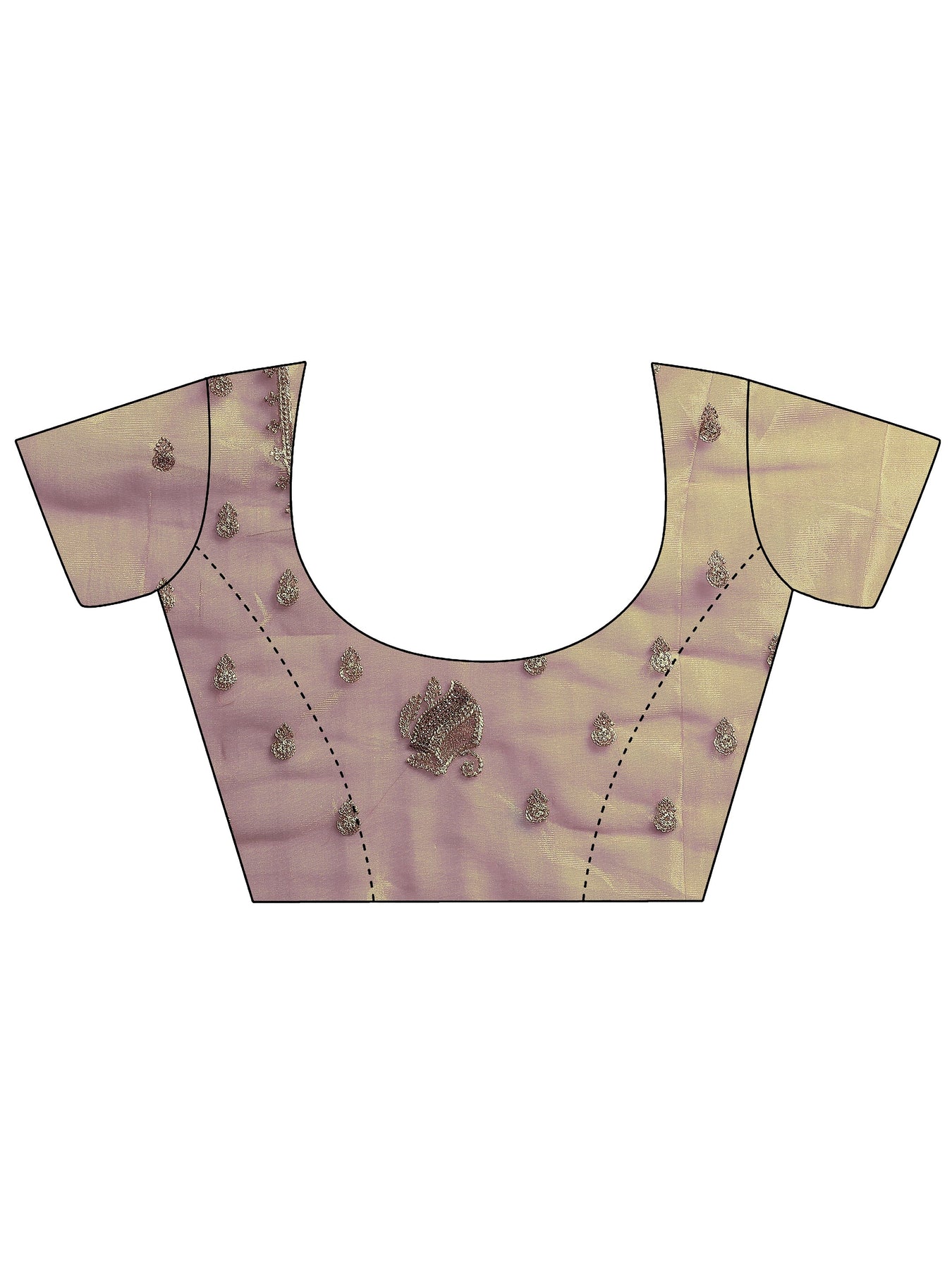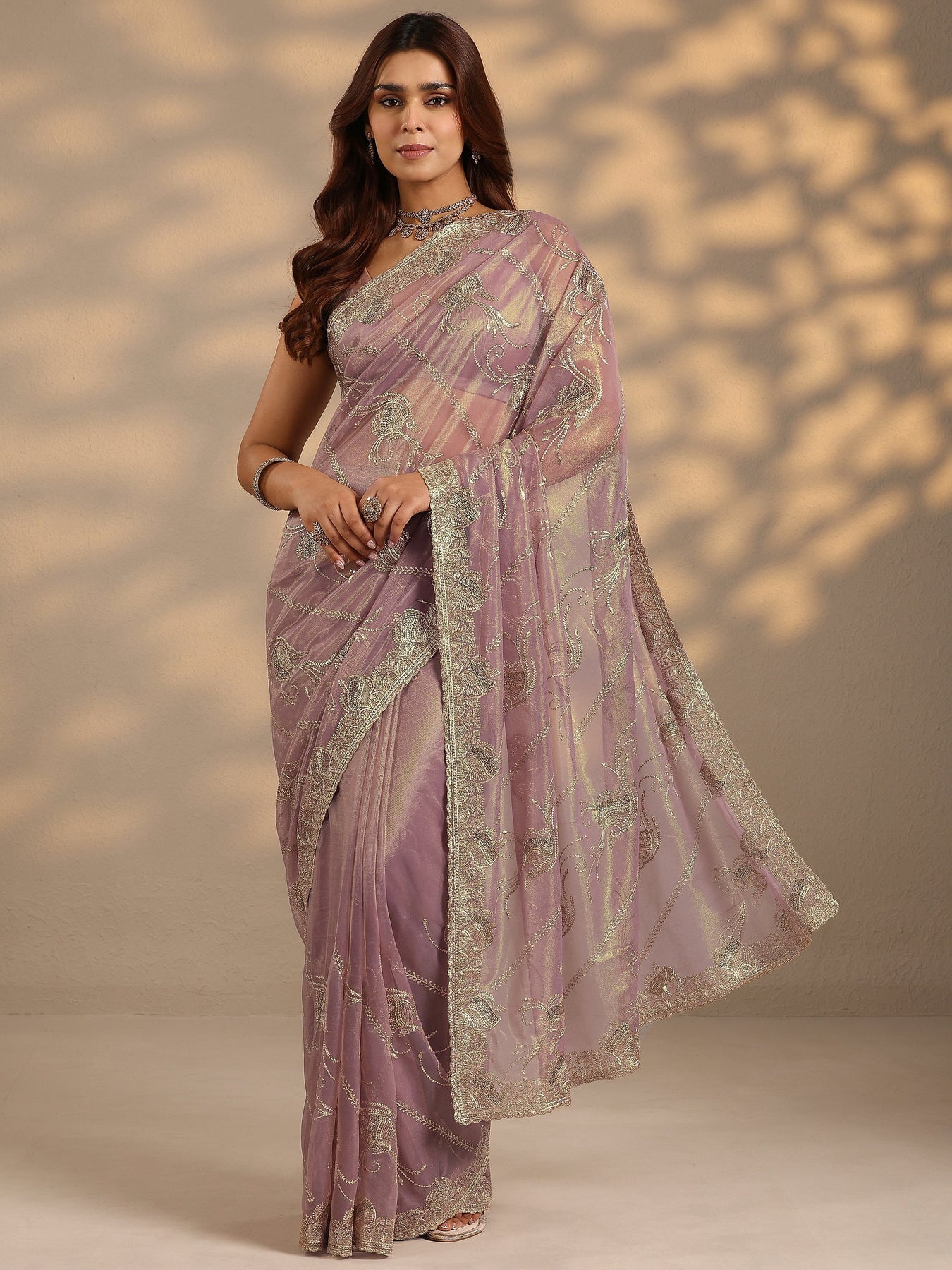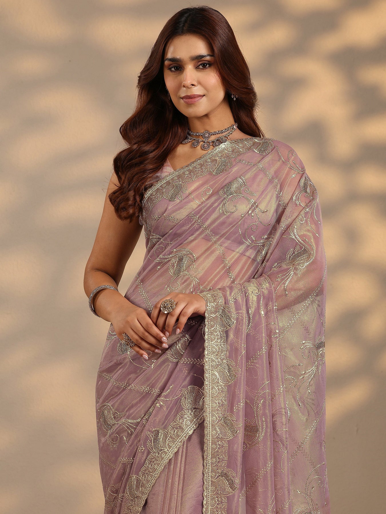 Lavender Embroidered Nylon Saree With Unstitched Blouse Piece