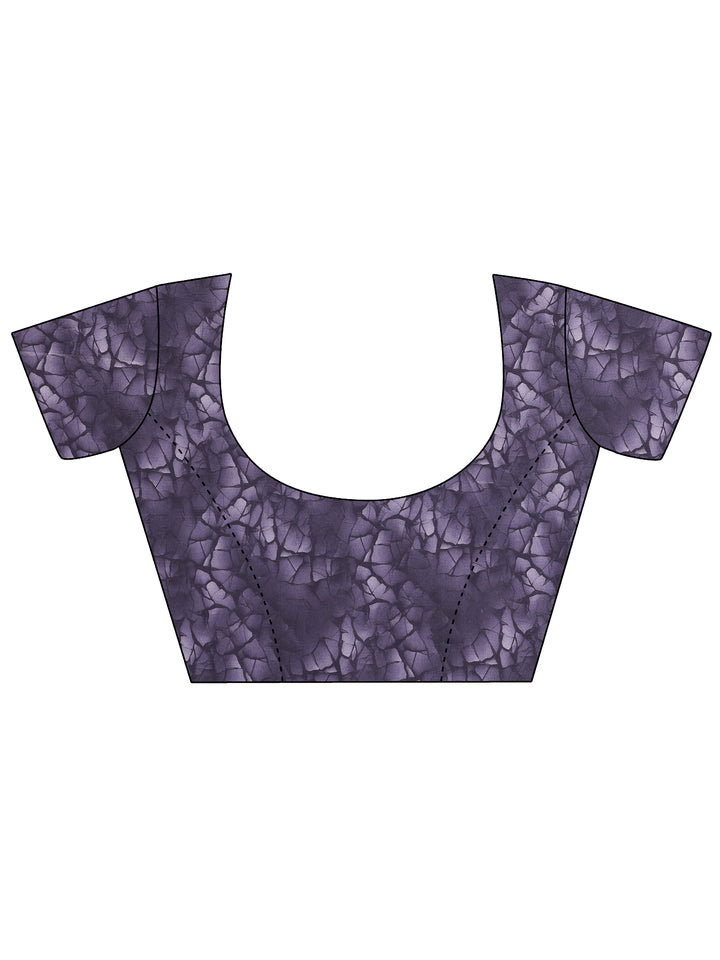 Lavender Printed Silk Blend Saree With Unstitched Blouse Piece