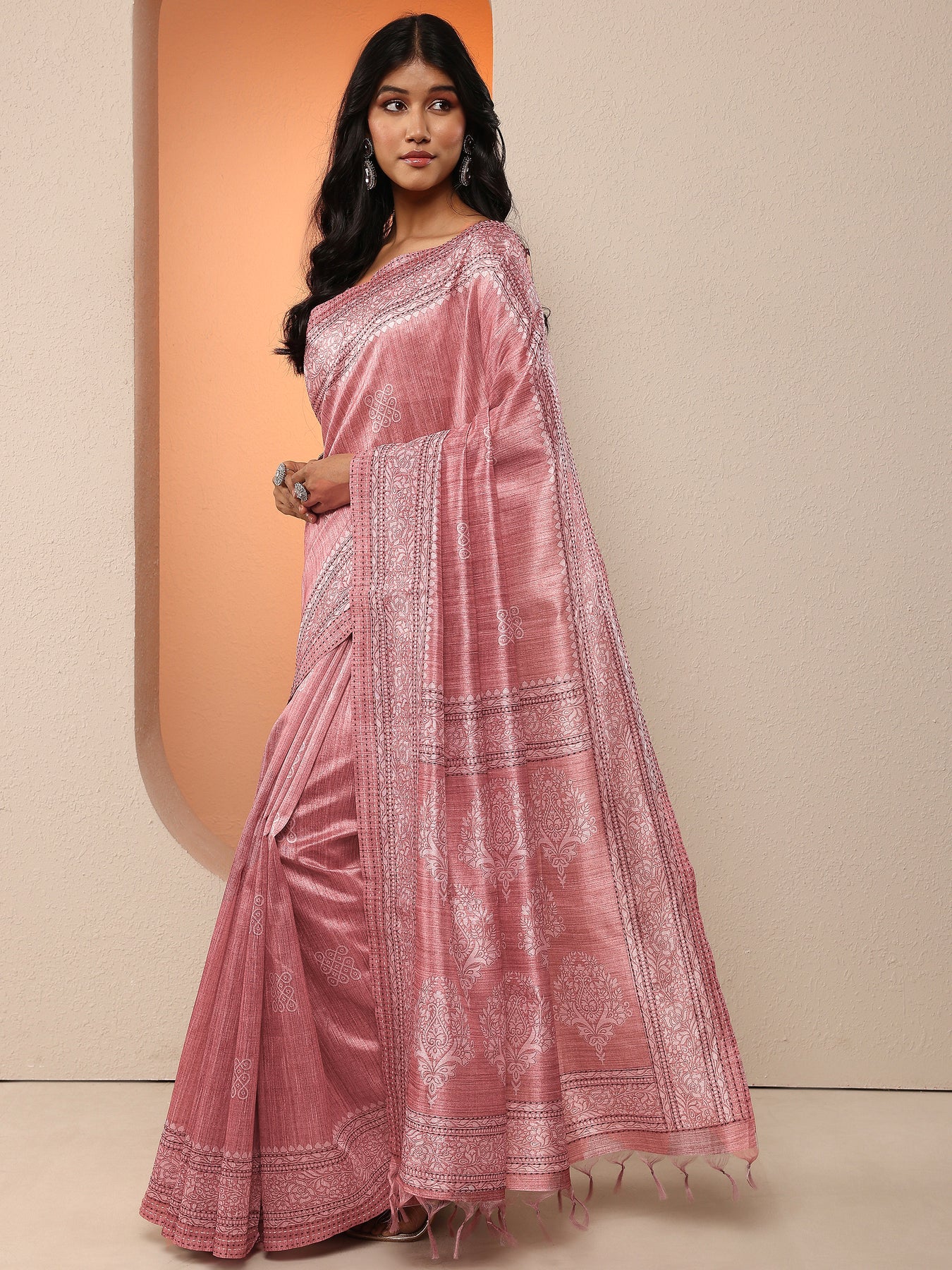 Mauve Printed Silk Blend Saree With Unstitched Blouse Piece