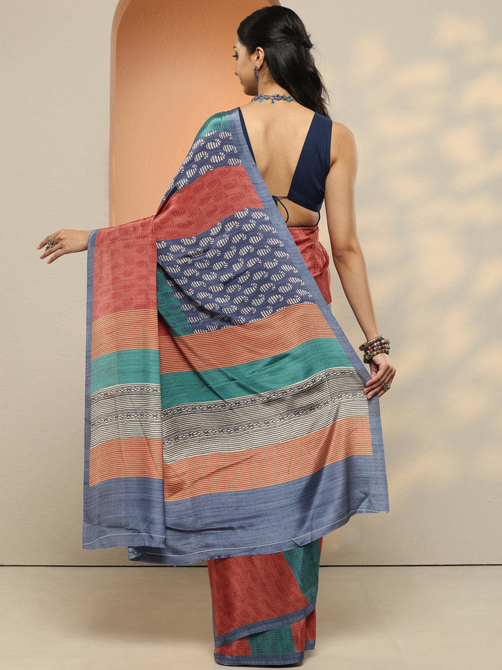 Our Multi-Colored Printed Silk Blend Saree Features Captivating Geometric And Striped Prints. Complemented With A Blouse Piece. This Charming Saree Is Perfect For Festive Occasions.