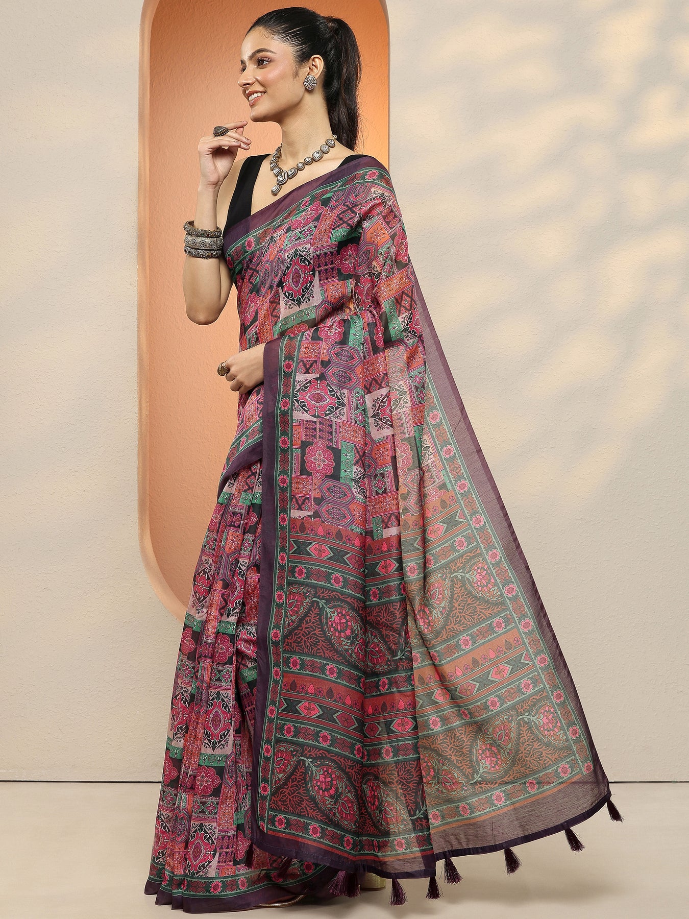 Multi Printed Silk Blend Saree With Unstitched Blouse Piece