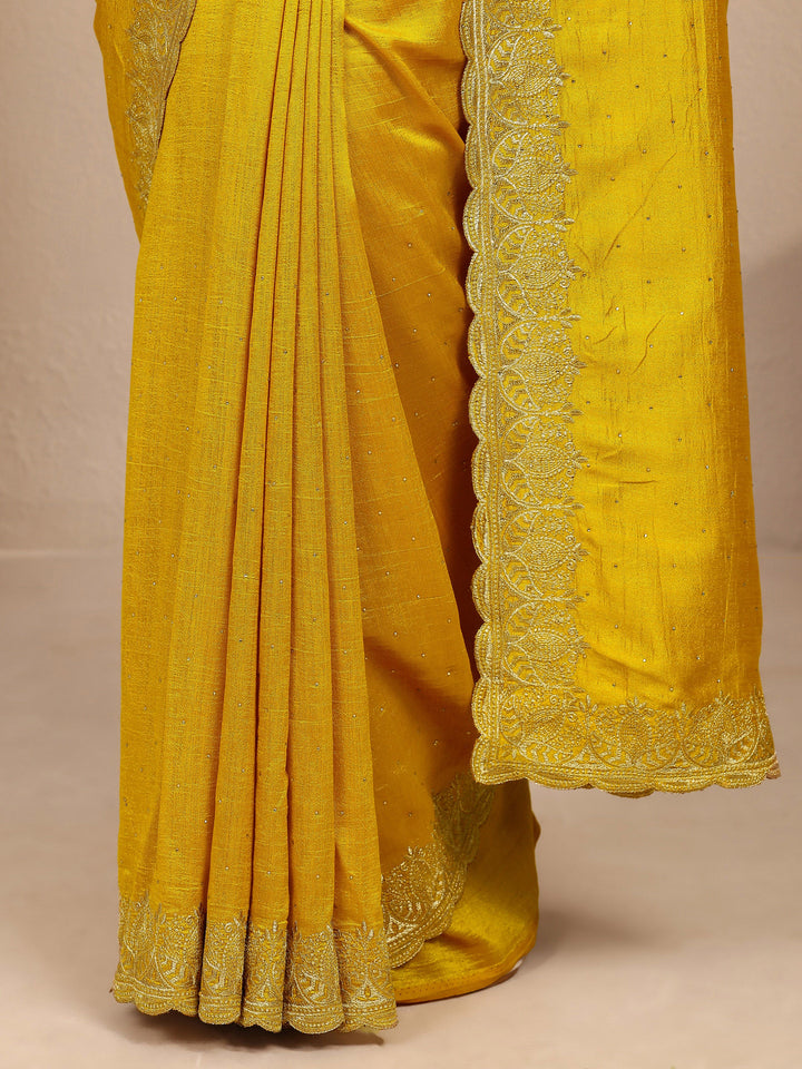 Mustard Embellished Silk Blend Saree With Unstitched Blouse Piece