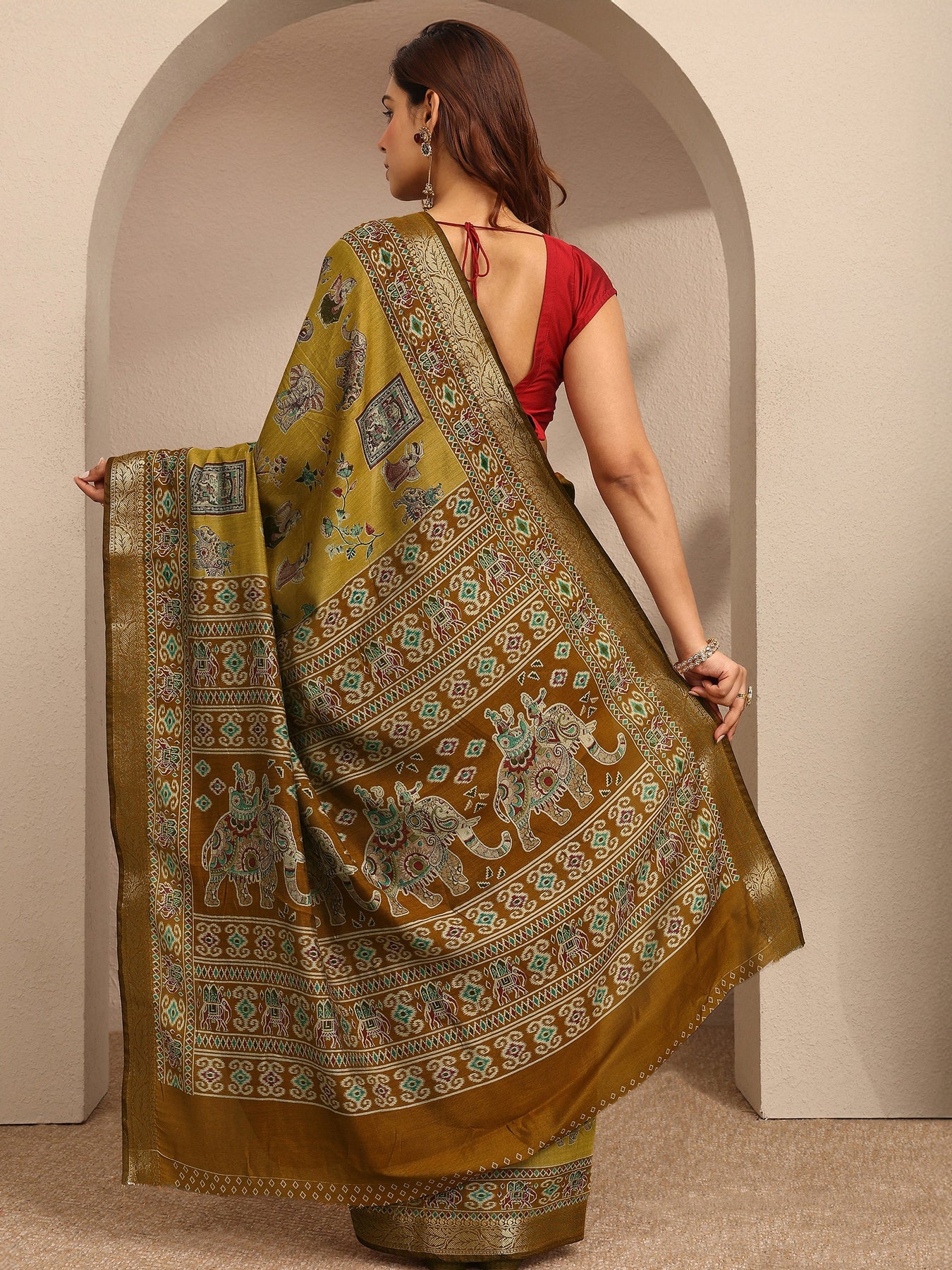 Mustard Tribal Printed Silk Blend Saree With Unstitched Blouse Piece