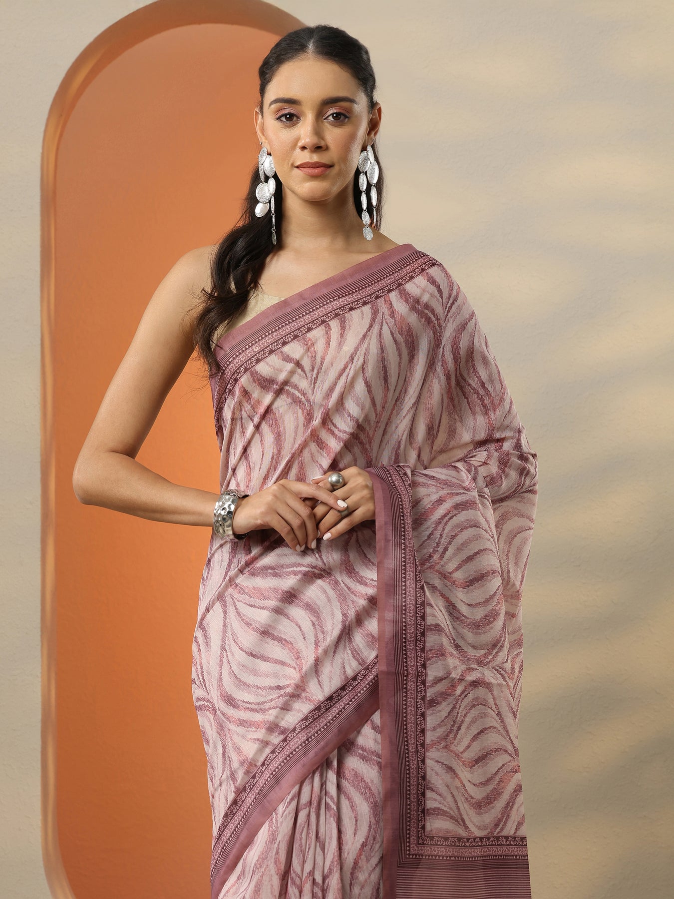 Peach Printed Silk Blend Saree With Unstitched Blouse Picece
