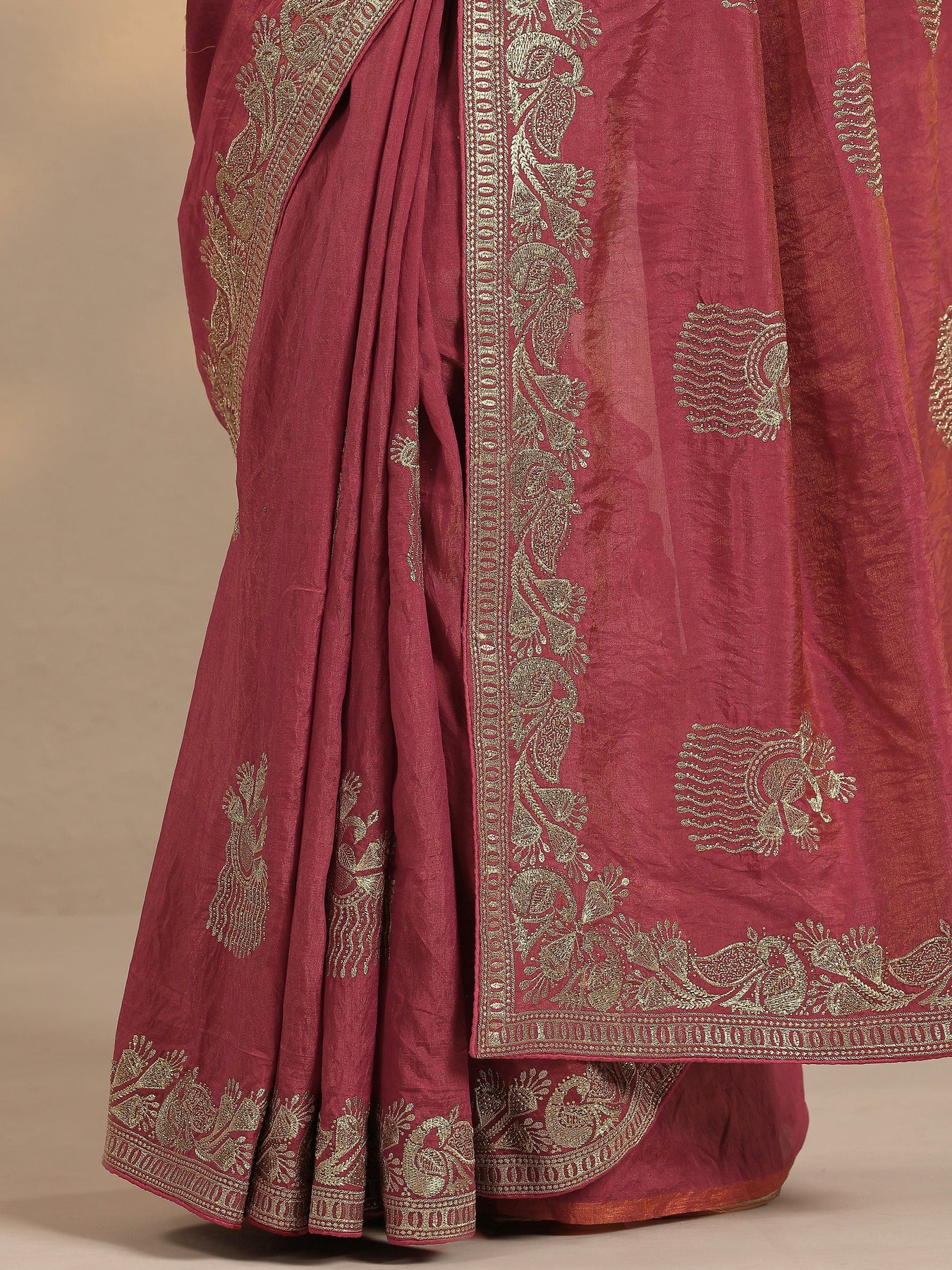 Our Mauve Printed Organza Saree Features Captivating Embellishments. Complemented With A Blouse Piece. This Charming Saree Is Perfect For Festive Occasions.