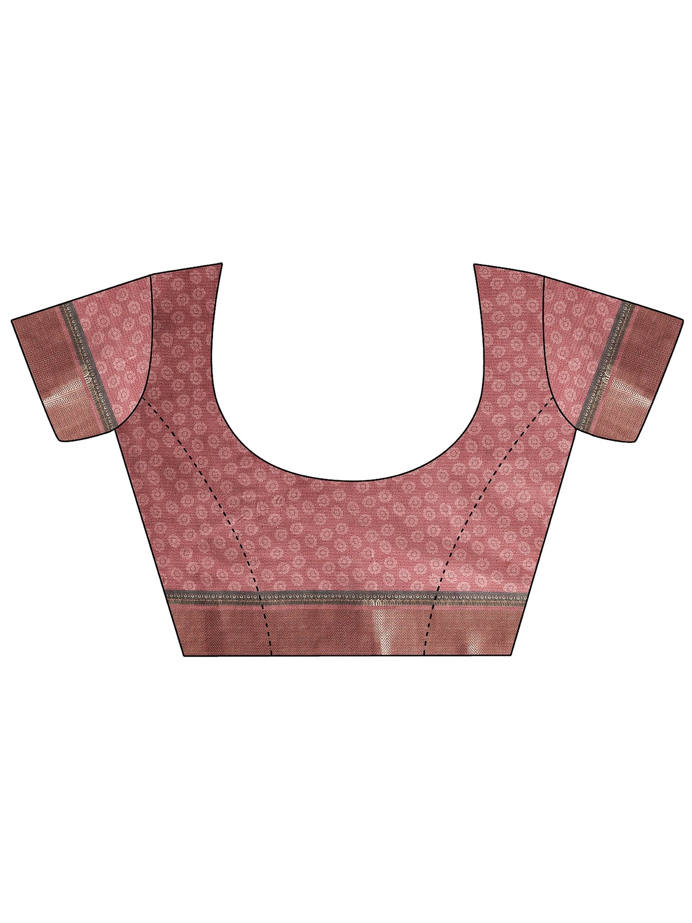 Pink Printed Silk Blend Saree With Unstitched Blouse Piece