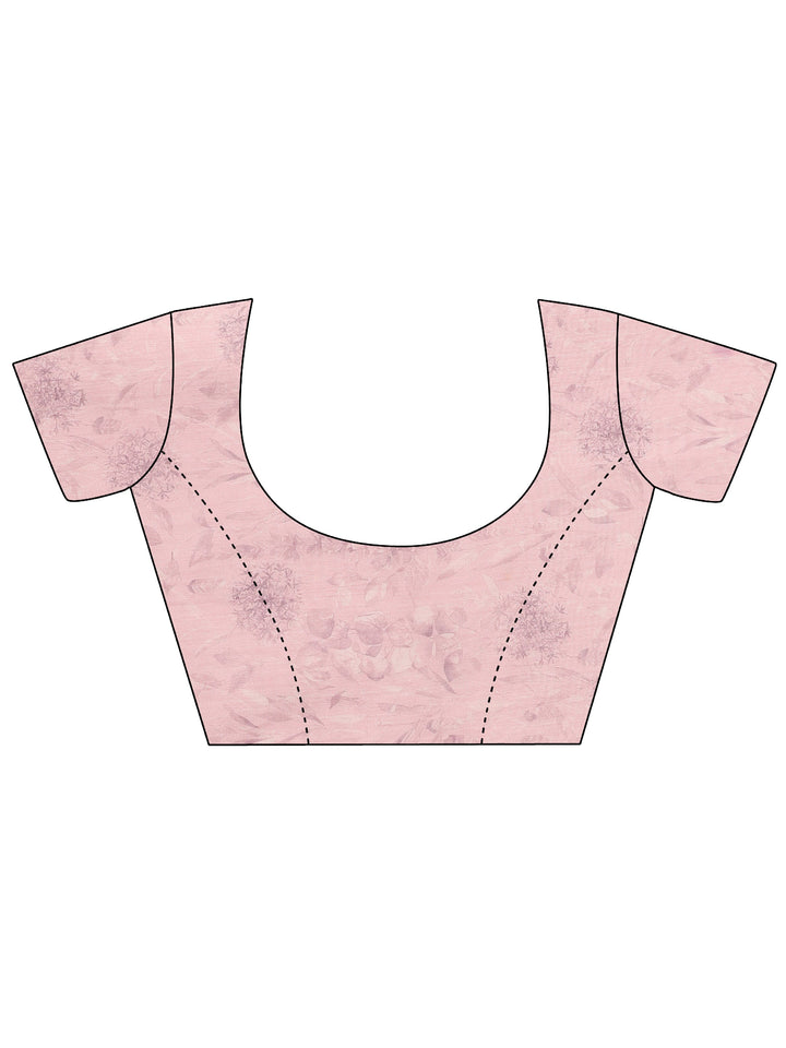 Our Pink Printed Silk Blend Saree Features Captivating Floral Print. Complemented With A Blouse Piece. This Charming Saree Is Perfect For Festive Occasions.