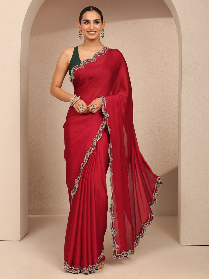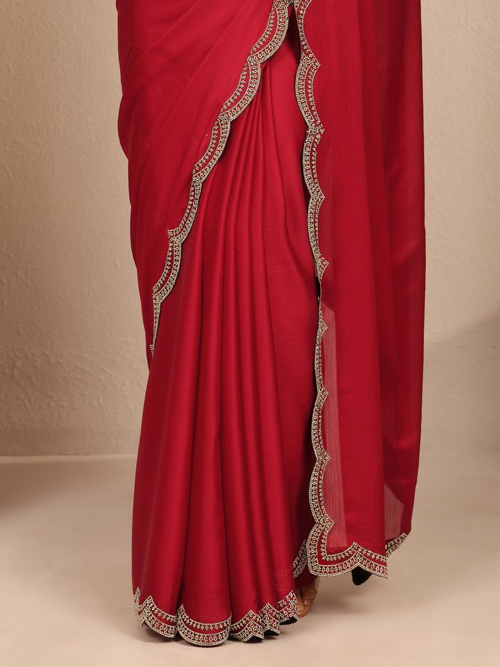 Red Solid Silk Blend Saree With Unstitched Blouse Piece