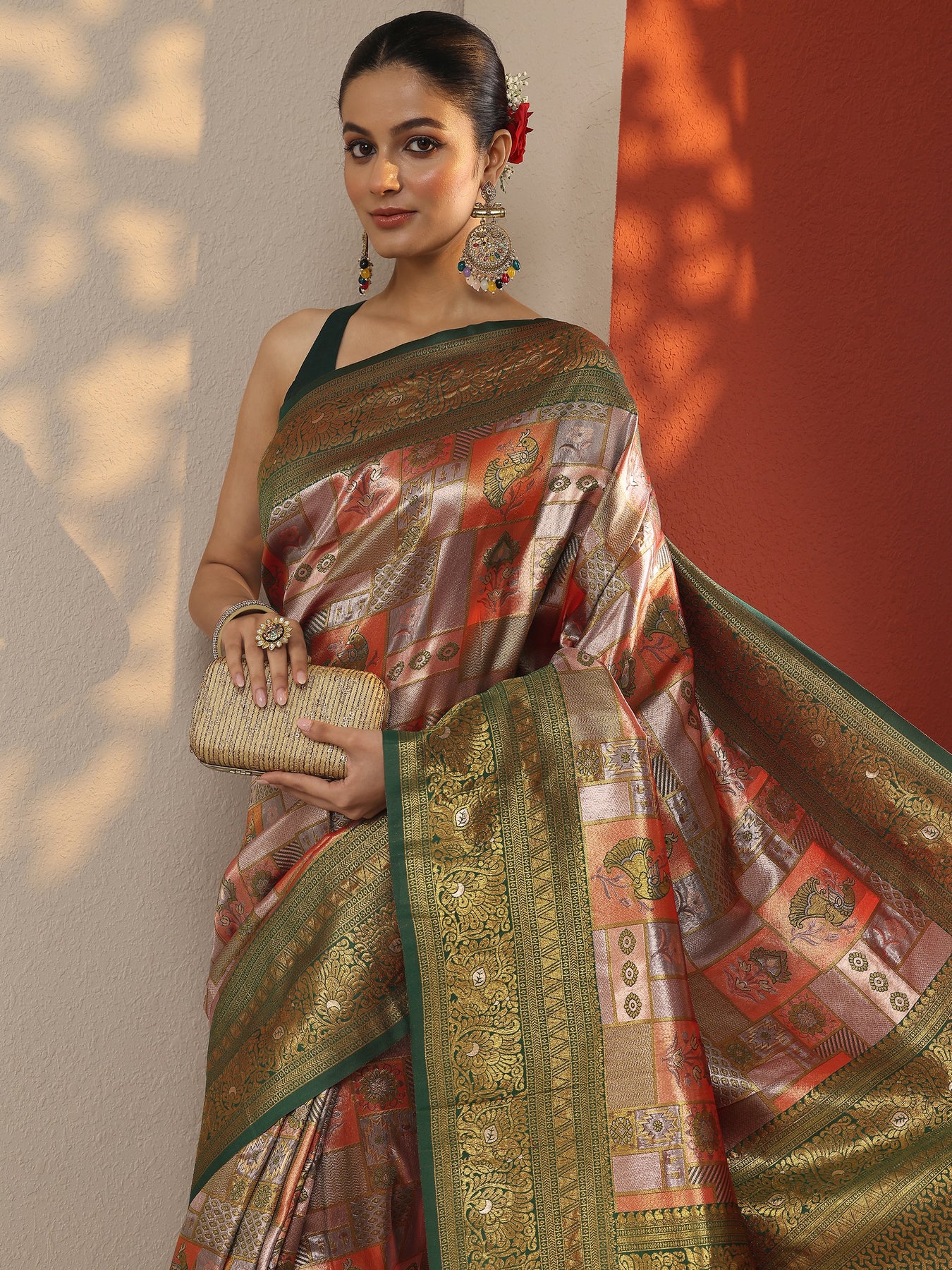 Red Woven Design Silk Blend Saree With Unstitched Blouse Piece