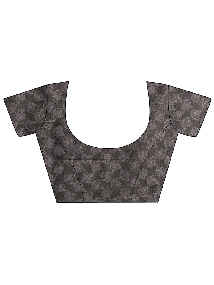 Taupe Printed Silk Blend Saree With Unstitched Blouse Piece