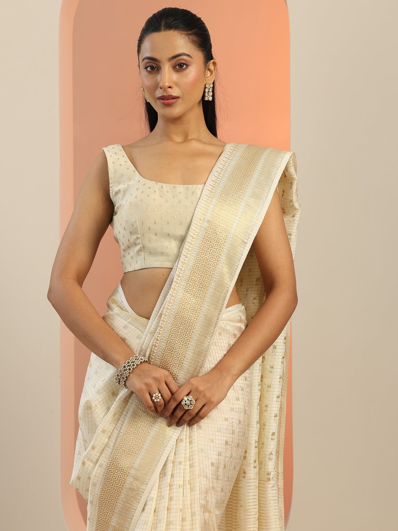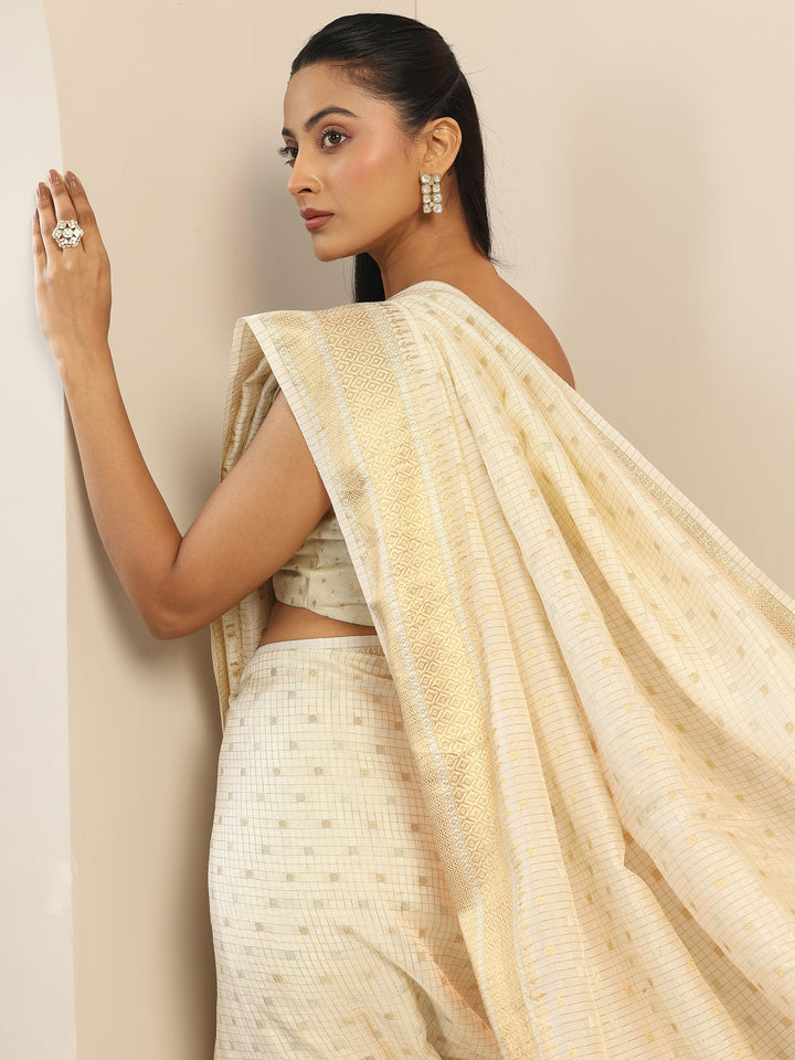 Cream Woven Design Silk Blend Saree With Unstitched Blouse Piece
