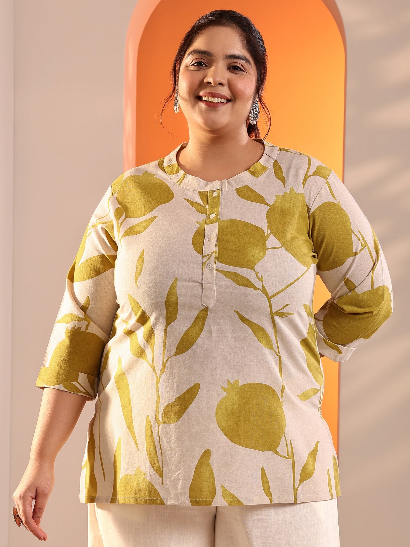 Plus Size Off White Printed Cotton Straight Short Kurti