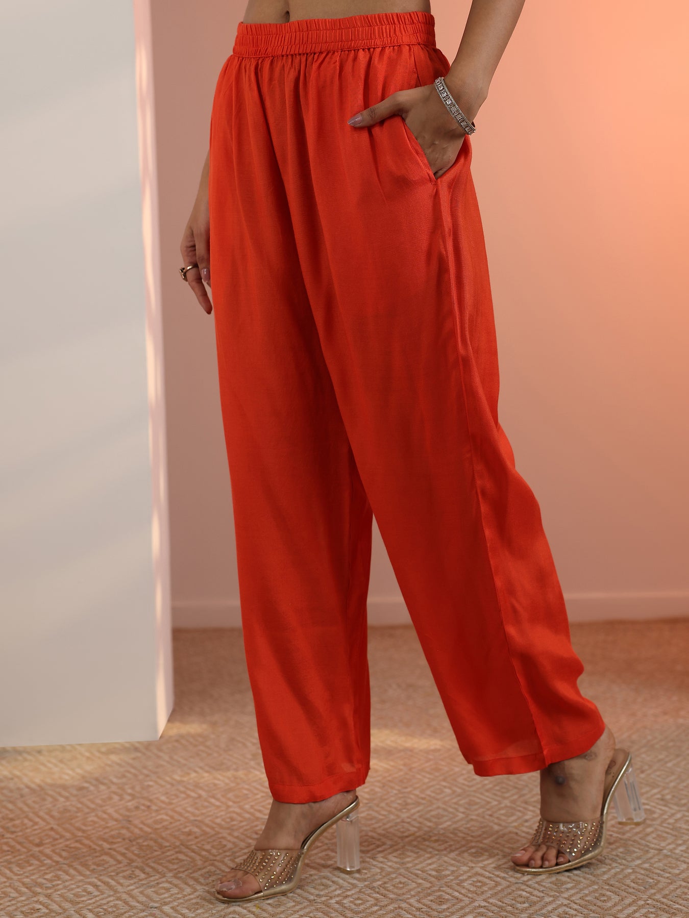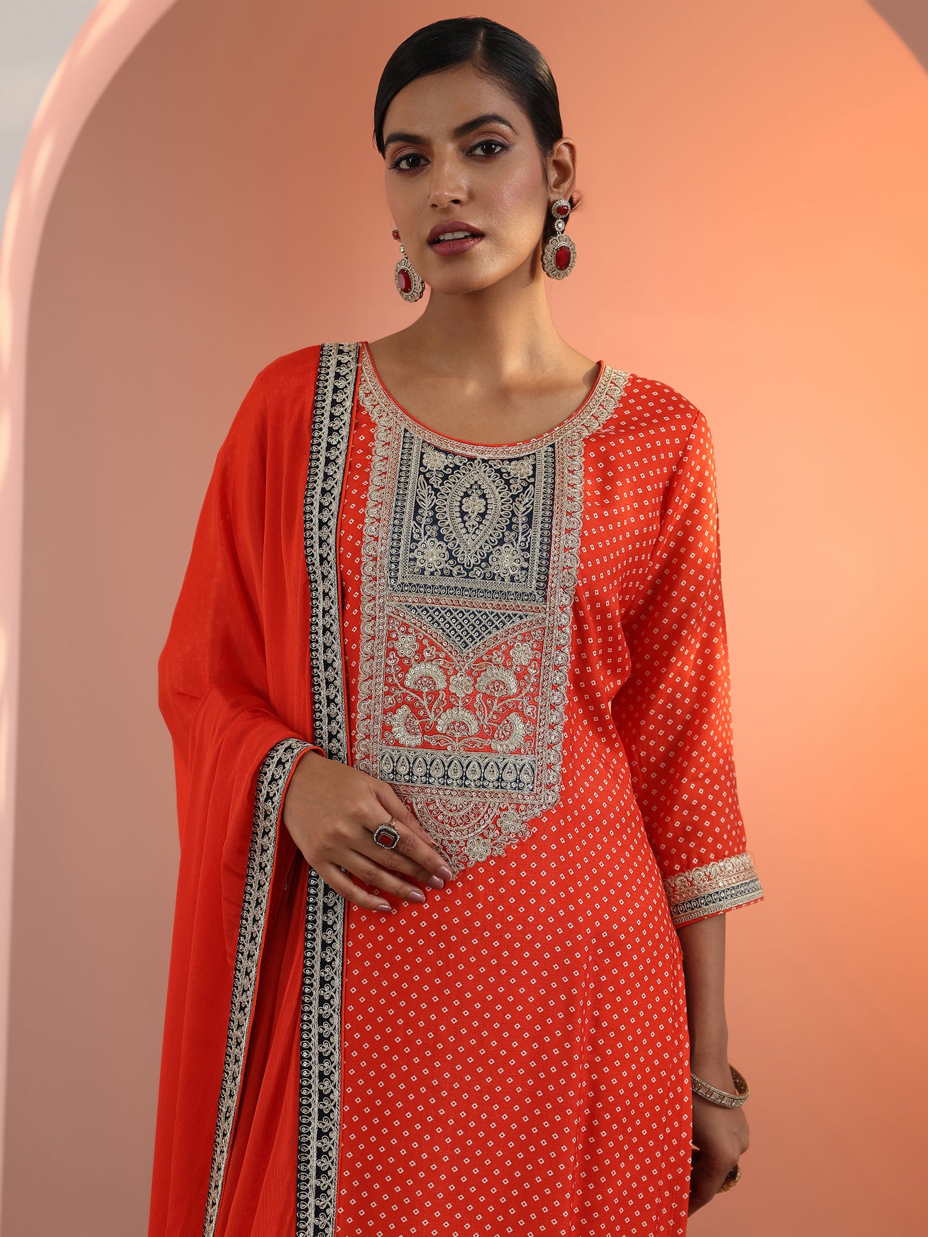 Orange Printed Silk Blend Straight Suit Set With Dupatta
