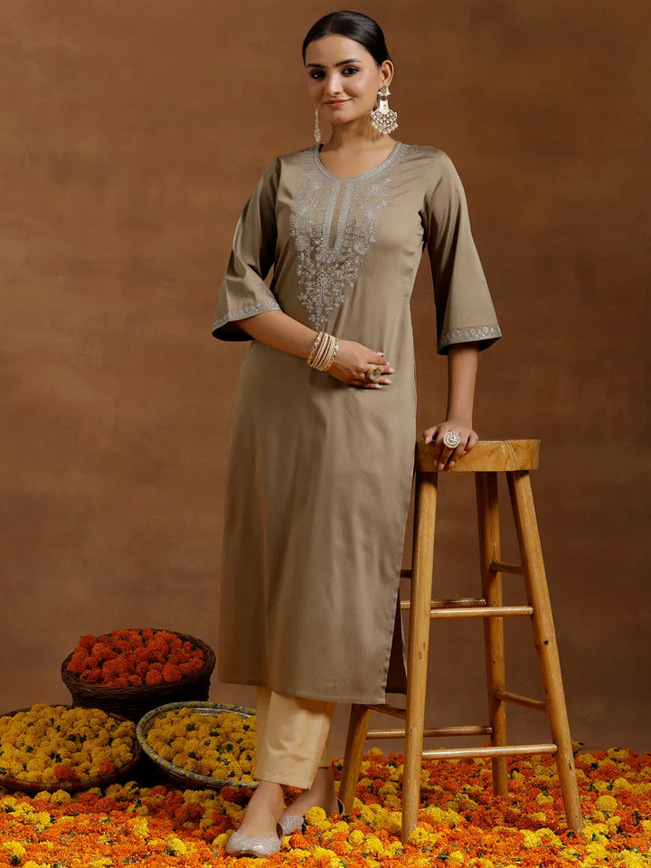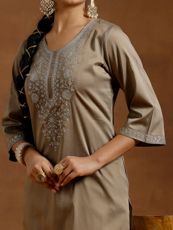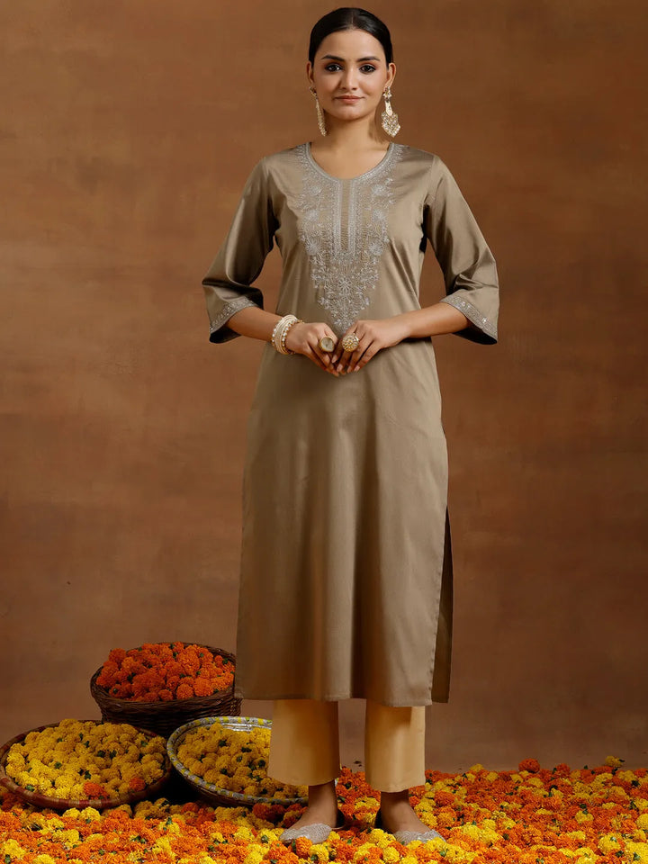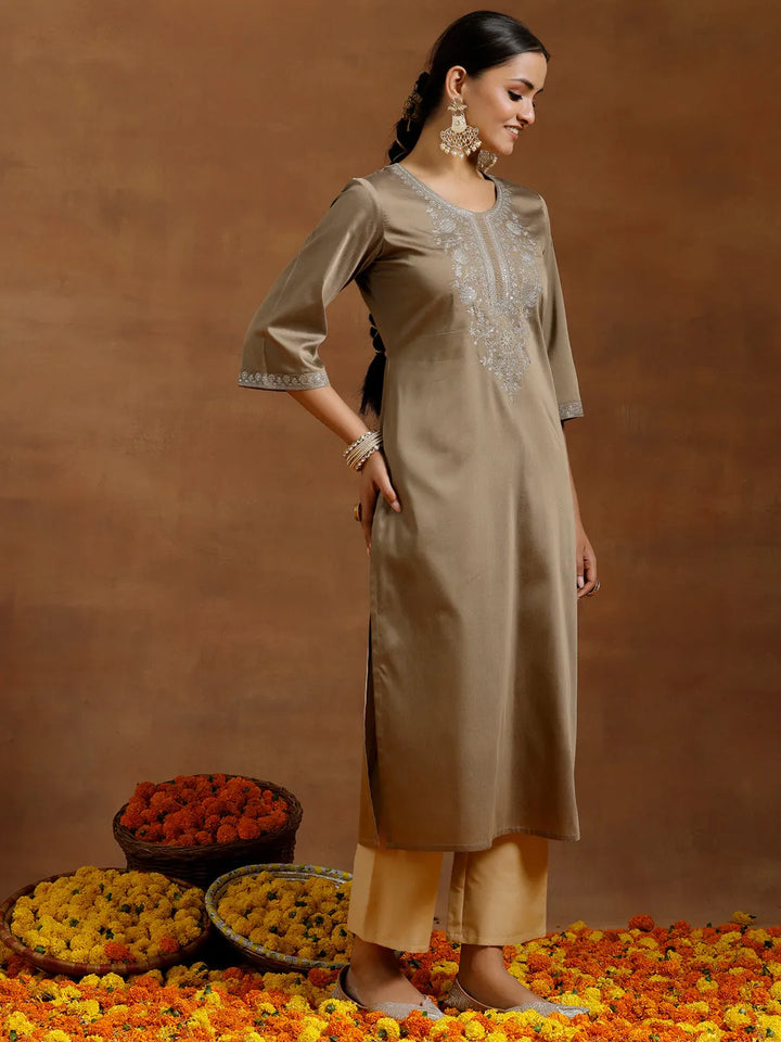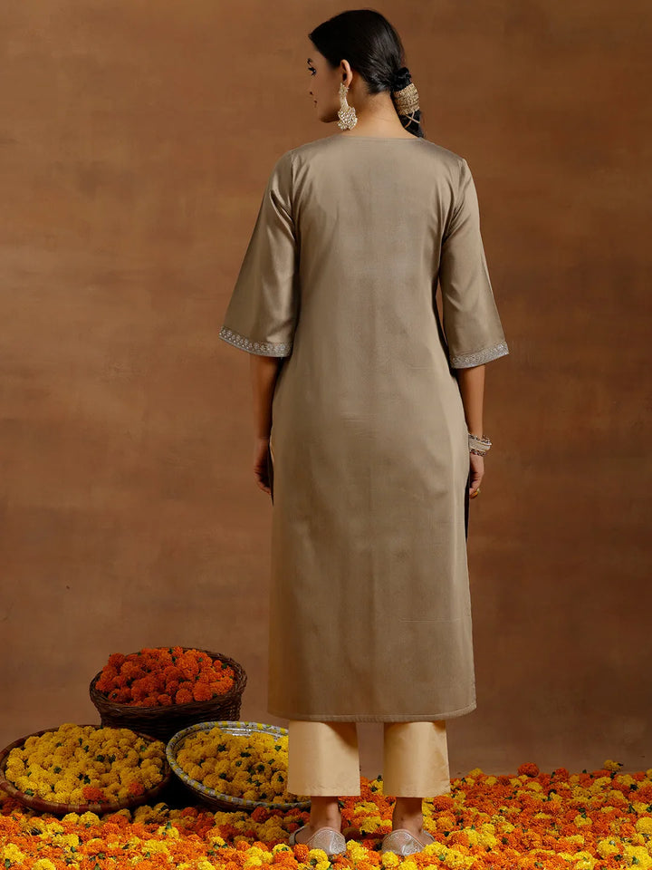 Gold Embroidered Silk Straight Kurta