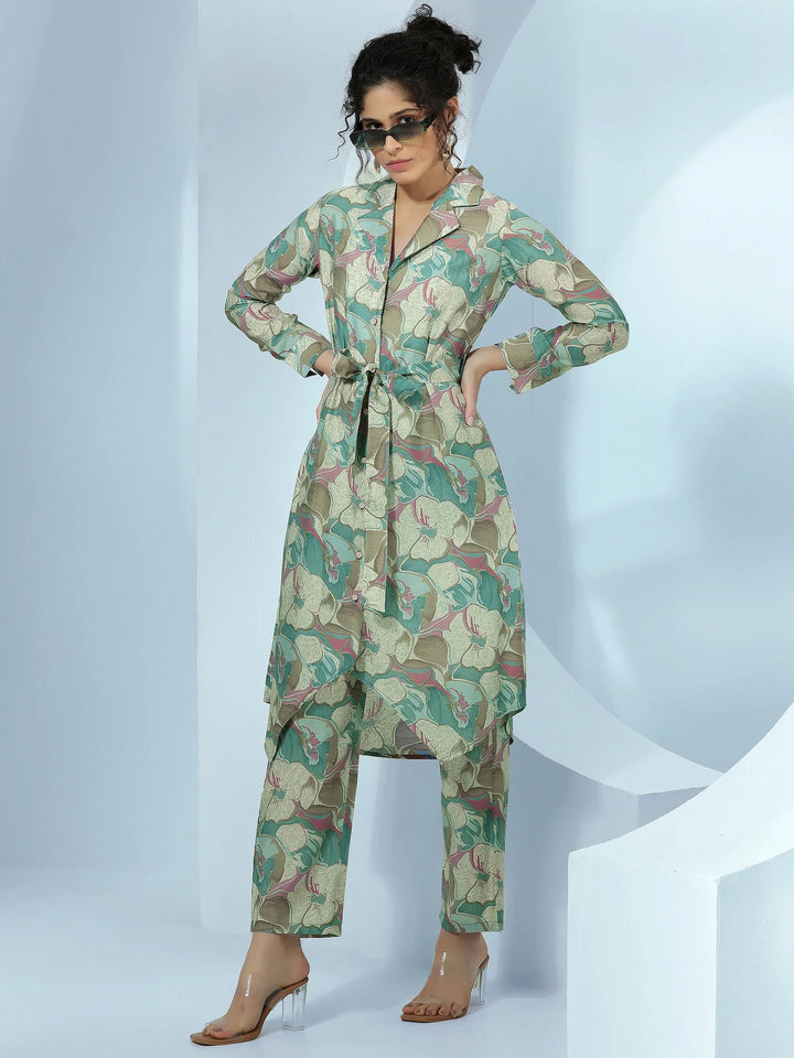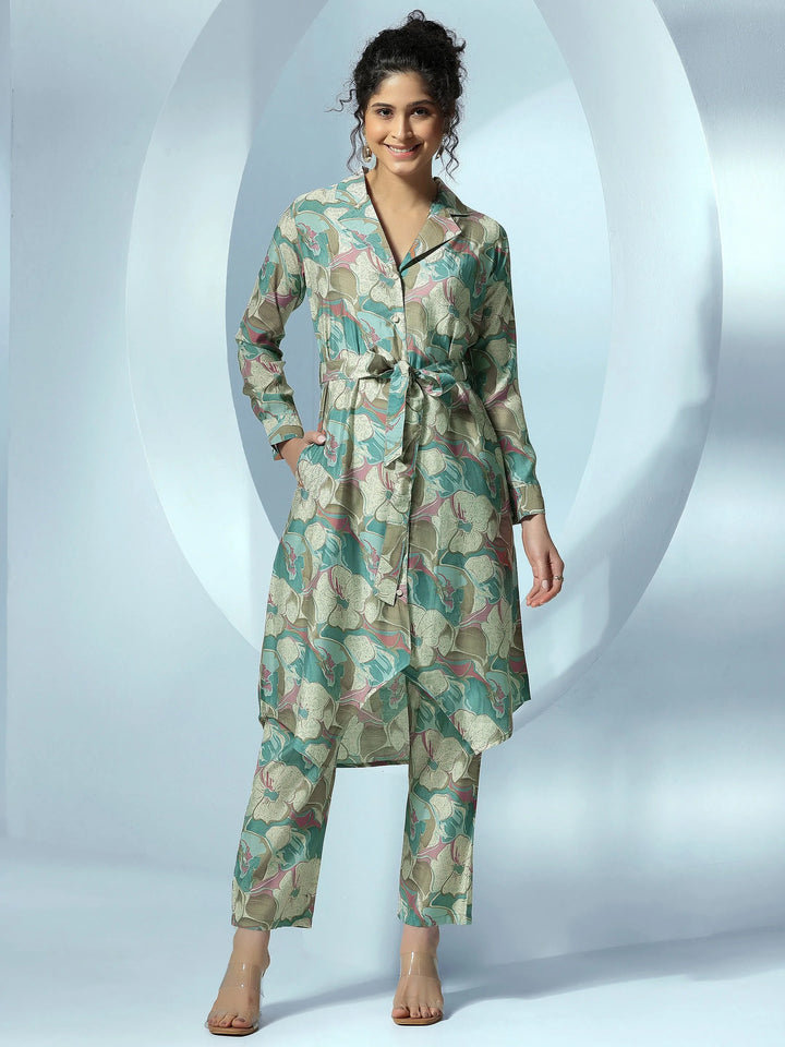 Our 2-piece multi printed silk blend co-ord set features a straight-fit shirt with a shirt collar neckline and long sleeves. Complemented with matching trousers with an elasticated waistband and 2 pockets. Highlighted with printed embellishments, this style is perfect for casual wear.