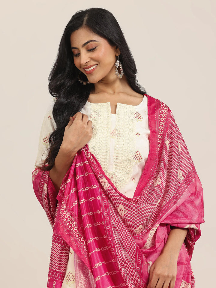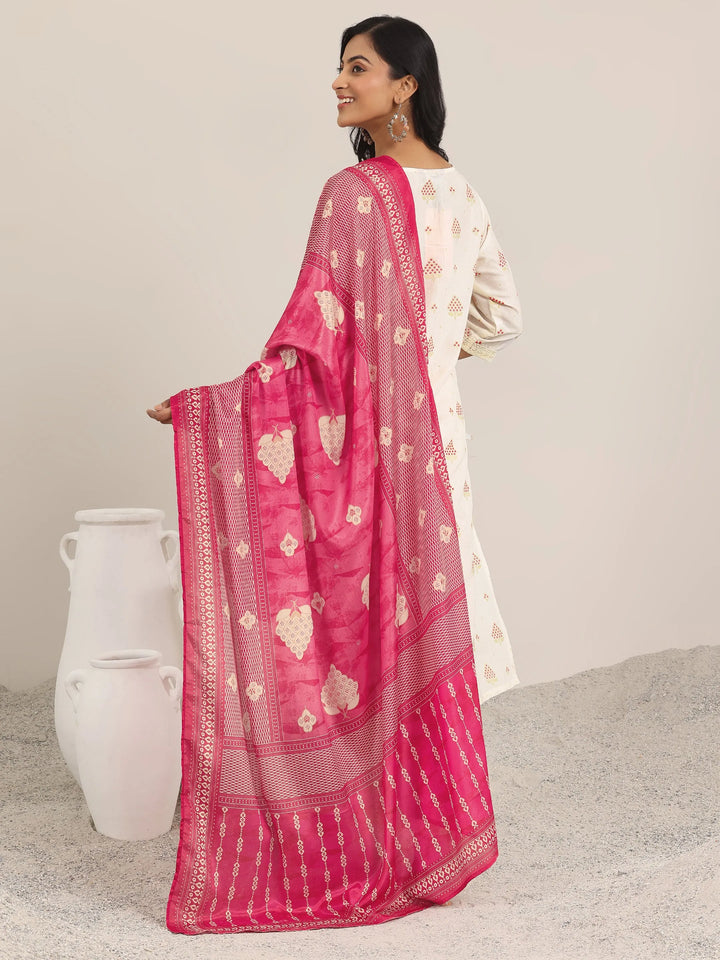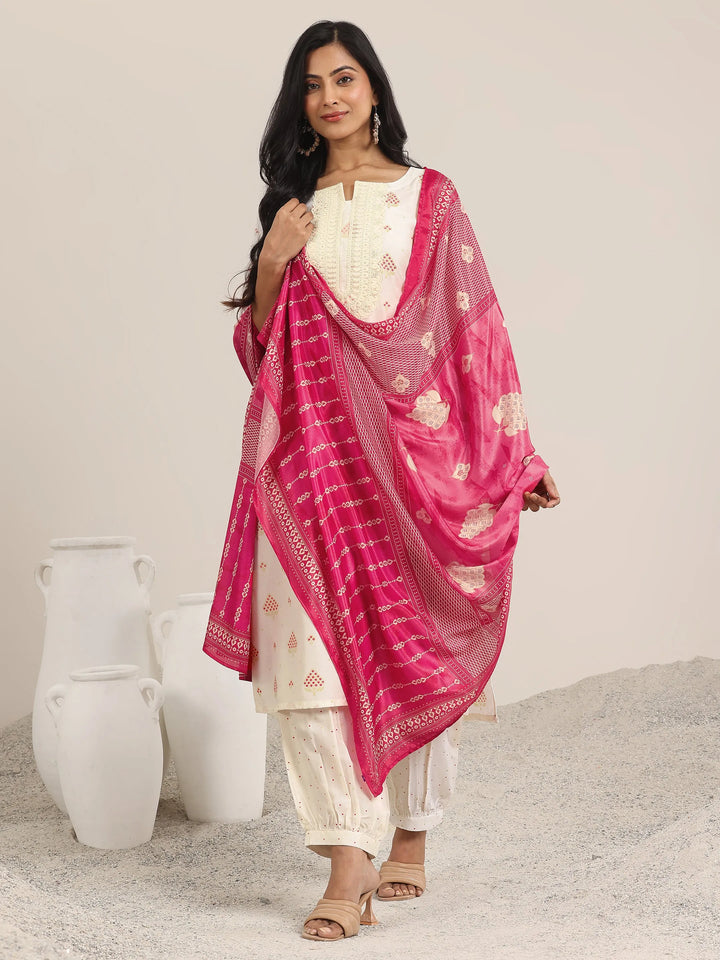 Off White Printed Silk Blend Straight Suit With Dupatta