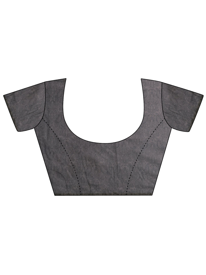 Grey Printed Silk Blend Saree With Unstitched Blouse Piece