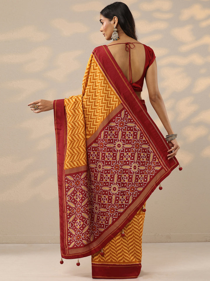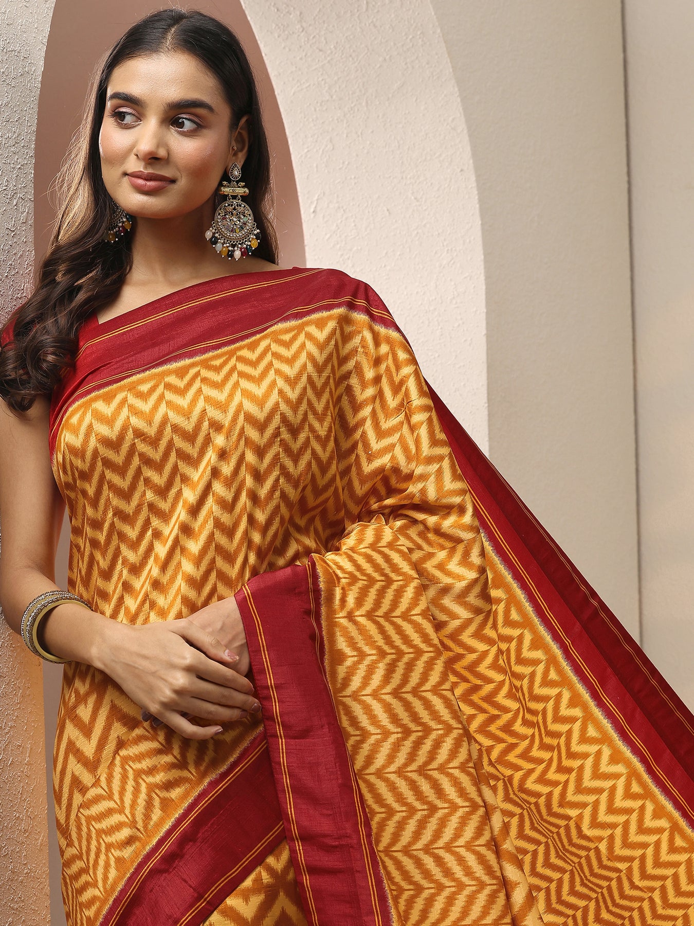 Mustard Leheriya Printed Silk Blend Saree With Unstitched Blouse Piece