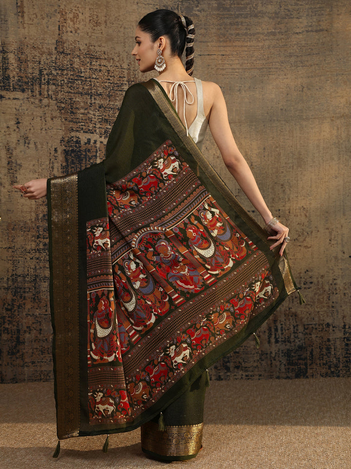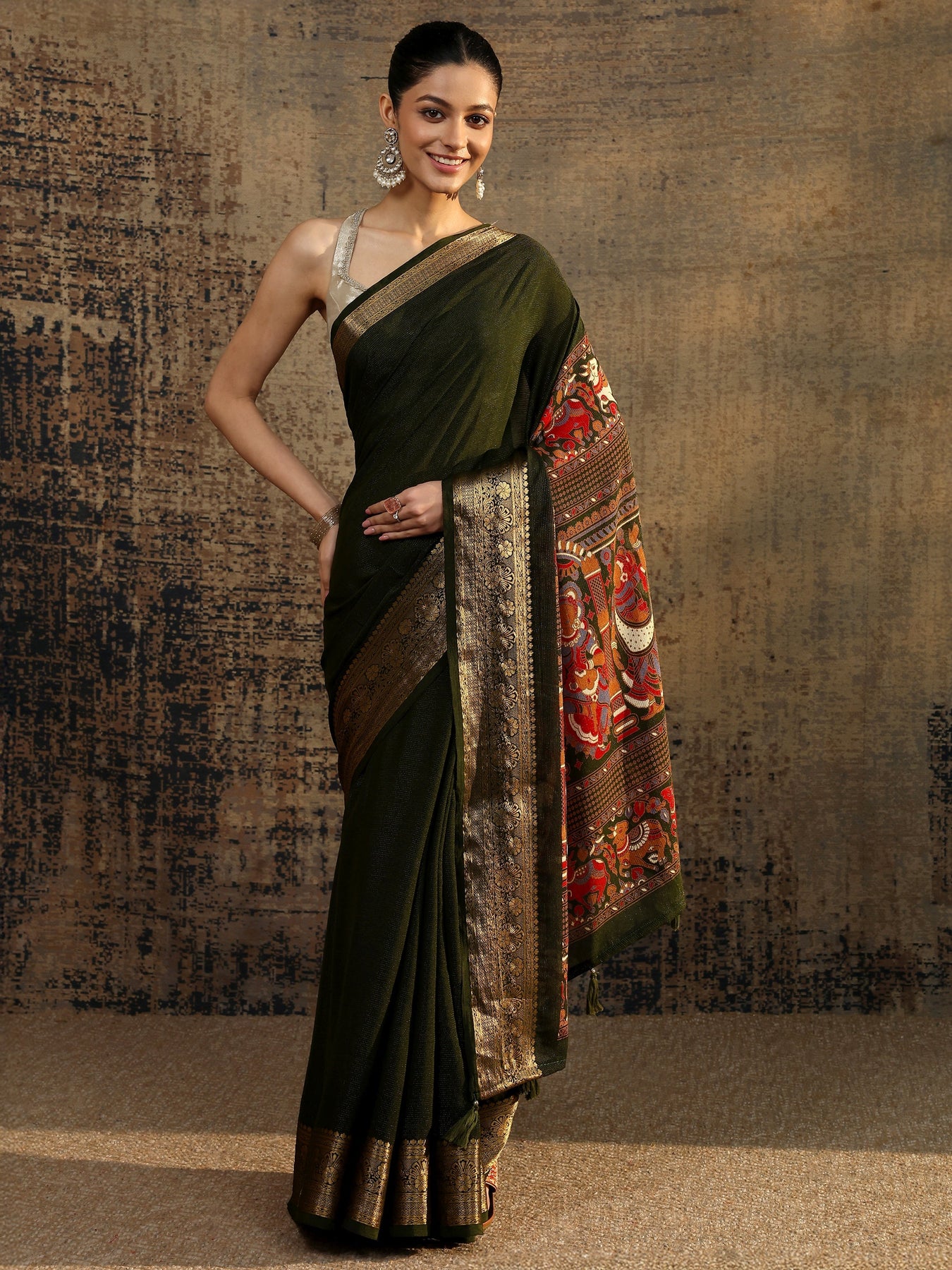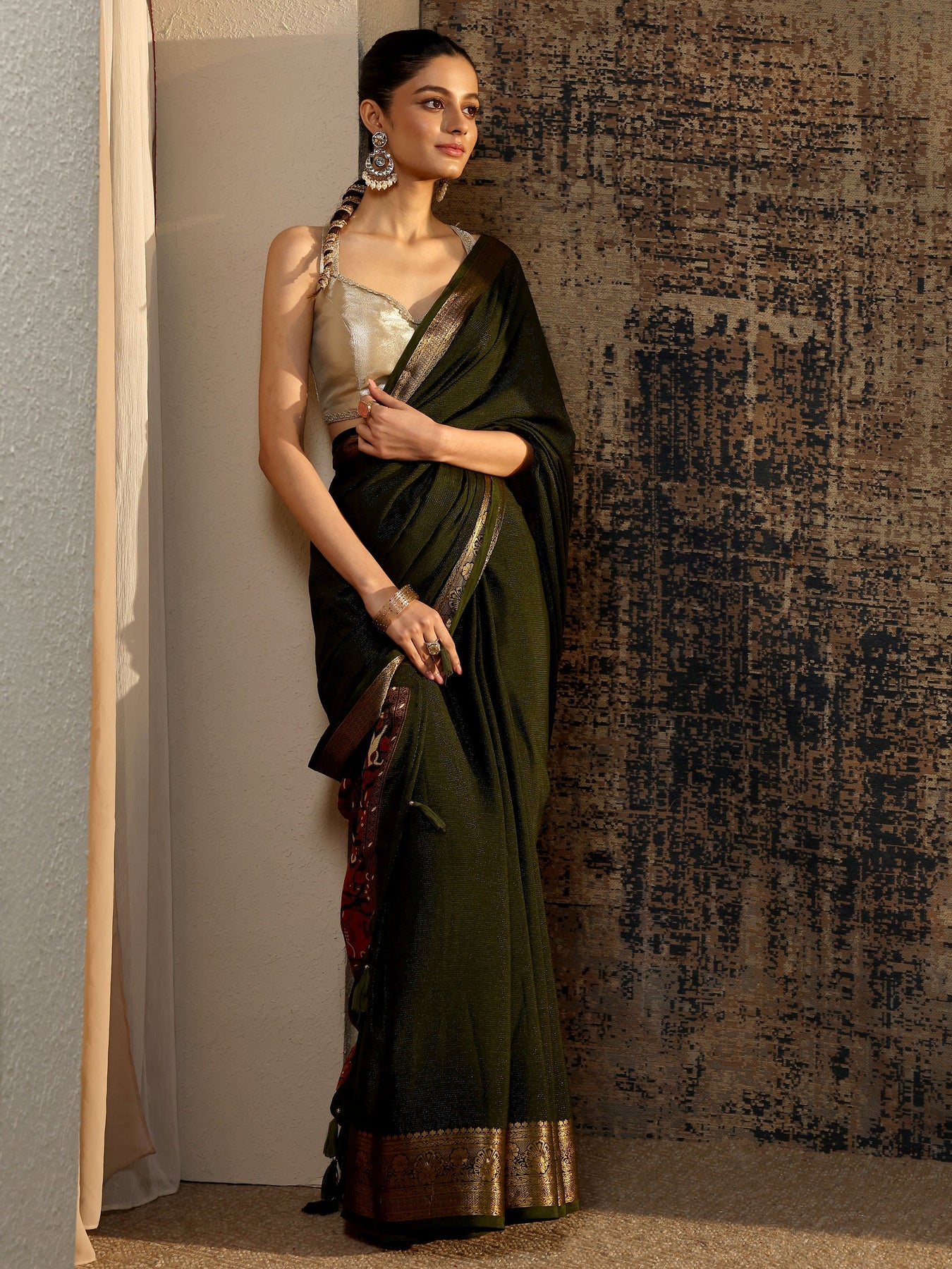 Green Solid Silk Blend Saree With Unstitched Blouse Piece