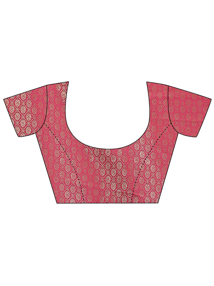 Pink Solid Silk Blend Saree With Unstitched Blouse Piece