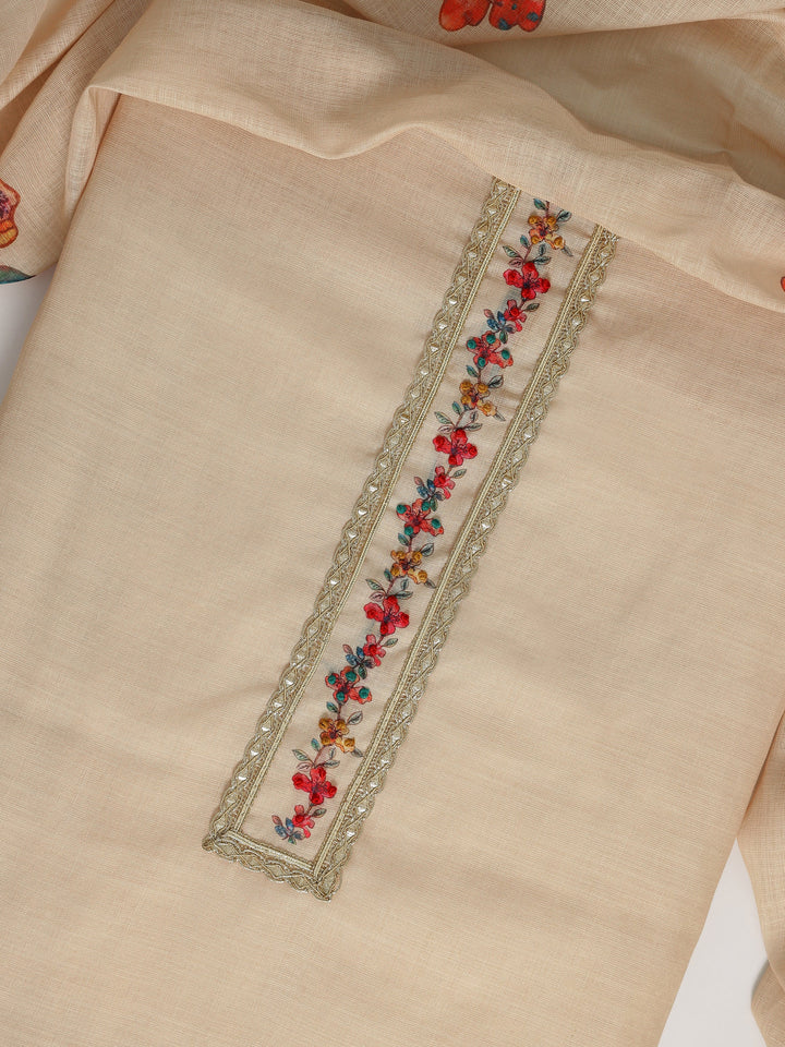 Beige Printed Cotton Blend Dress Material With Dupatta