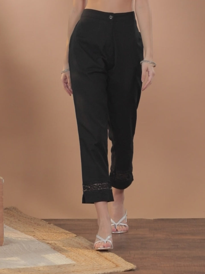 Black Solid Cotton Trousers