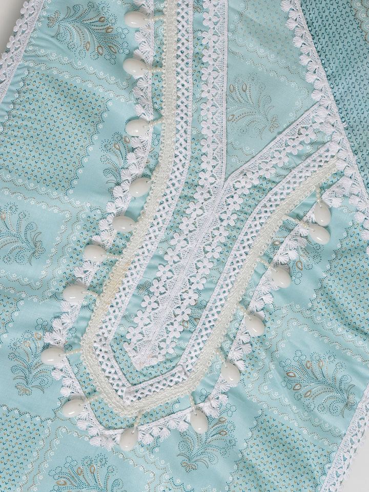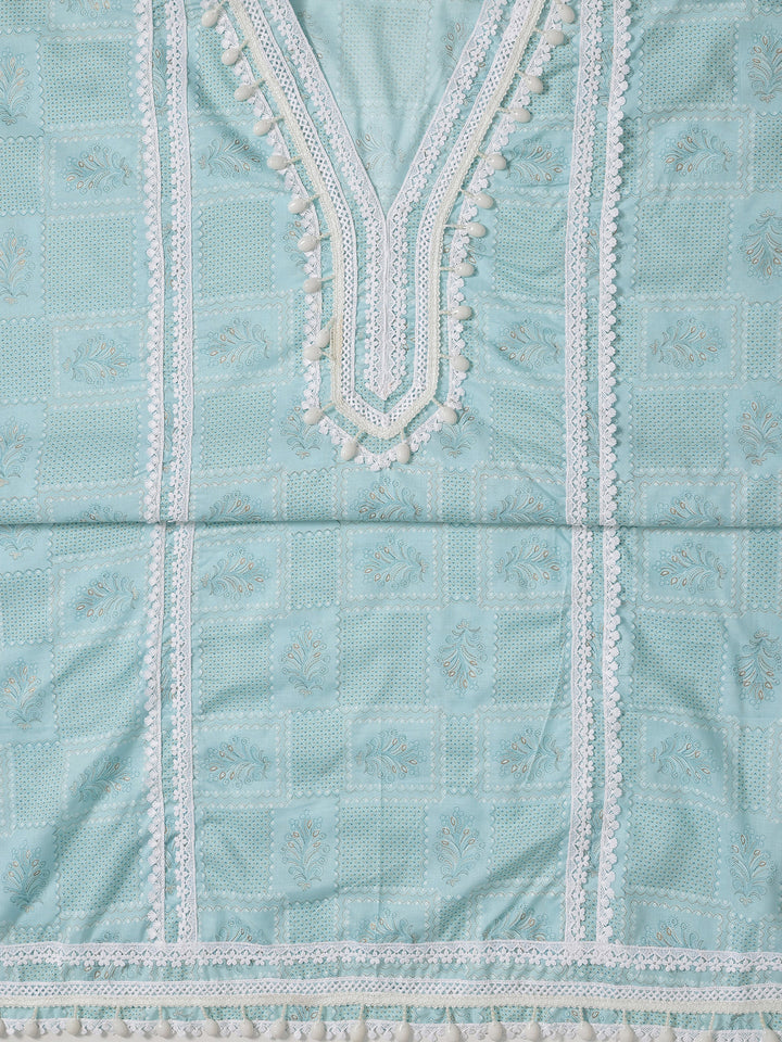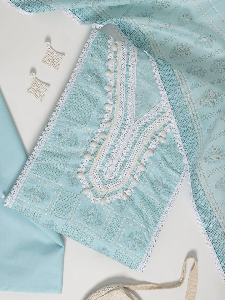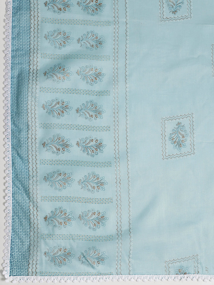Blue Printed Cotton Blend Dress Material With Dupatta